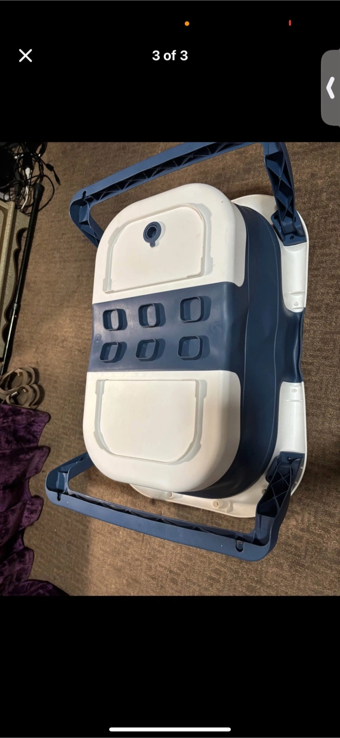I'm selling a foldable baby bathtub in great condition! It's a convenient and space-saving solution for bath time with your little one. The tub features a blue and white design and comes with a supportive cushion for added comfort and safety. Perfect for easy storage and travel!