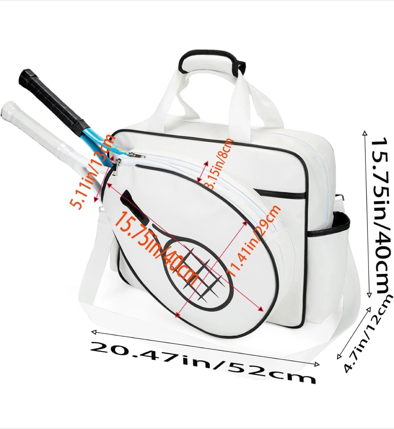 Tennis Bags Tennis Tote Bags PU Leather Women Men Women Portable Gym Bag Water Bottle Holder Sport Shoulder Straps Tennis Rackets Tennis Tote Bag Shoulder Bag Can Hold 2 Rackets