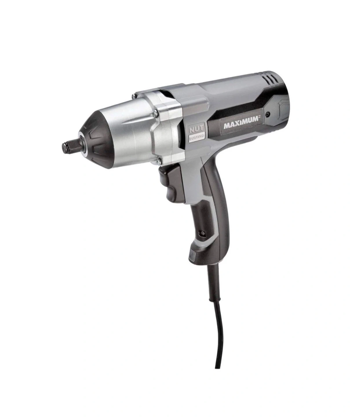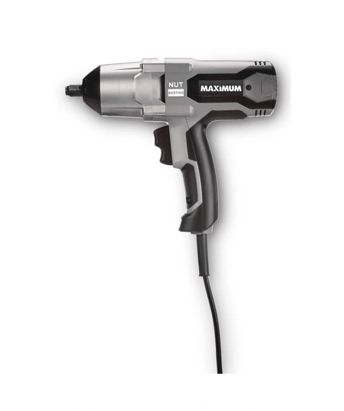 This is a Maximum brand impact wrench with nut busting technology. It's a corded electric tool designed for heavy-duty fastening and loosening tasks. Its ergonomic grip makes it comfortable to use for extended periods.