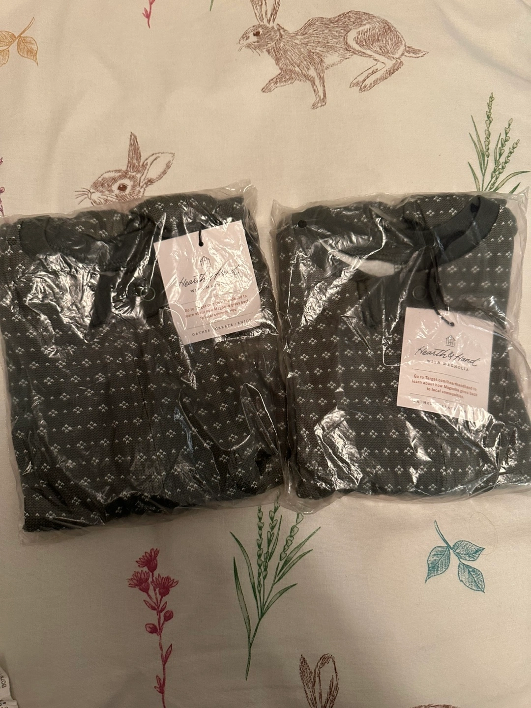 I'm selling two brand new Hearth & Hand with Magnolia kids' sleepsuits. It's still in the original packaging with tags attached. Never before used.