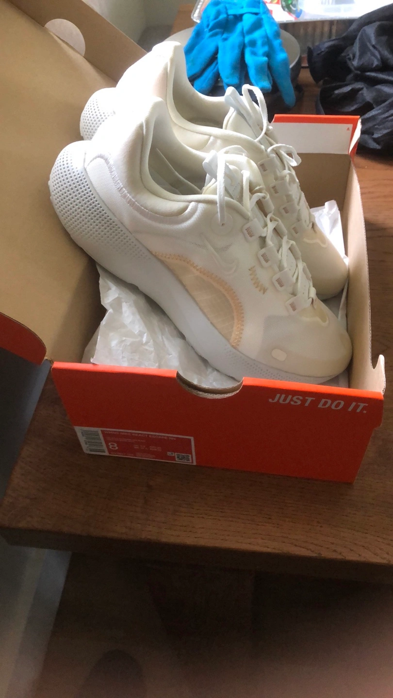 Selling a pair of Nike React Escape RN women's sneakers in size 8. The colour is sail/mtlc cashmere-sea glass. They come with the original box!