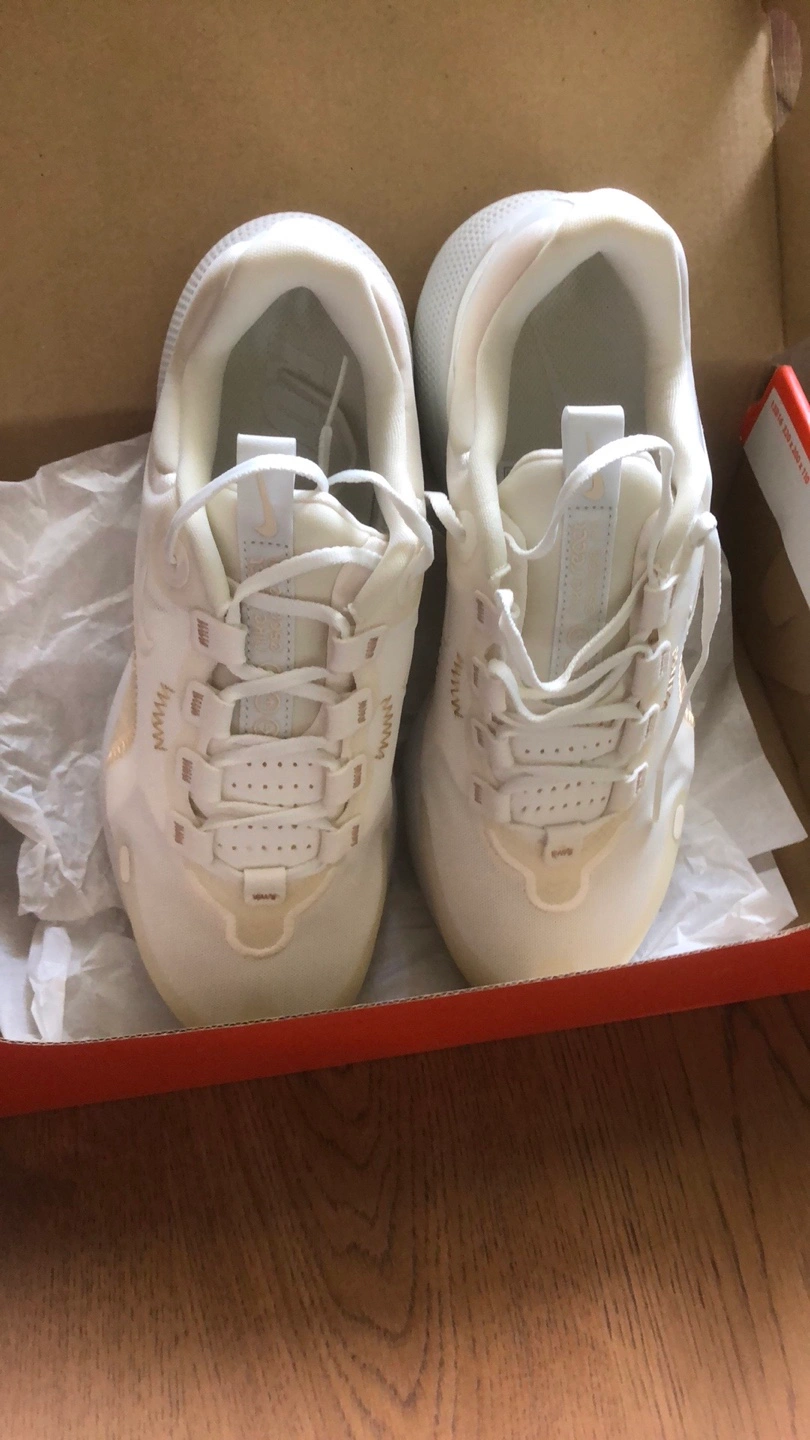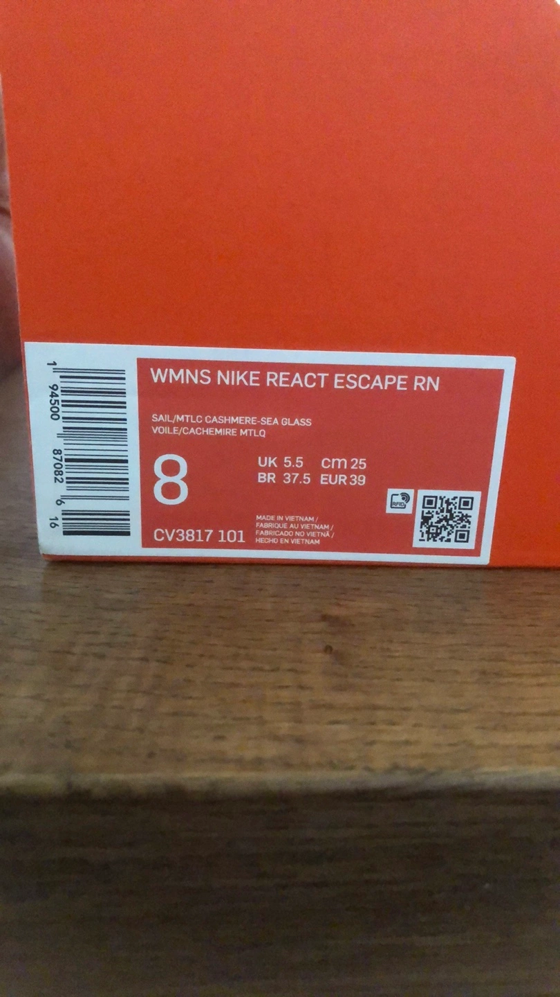 Selling a pair of Nike React Escape RN women's sneakers in size 8. The colour is sail/mtlc cashmere-sea glass. They come with the original box!