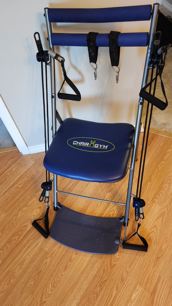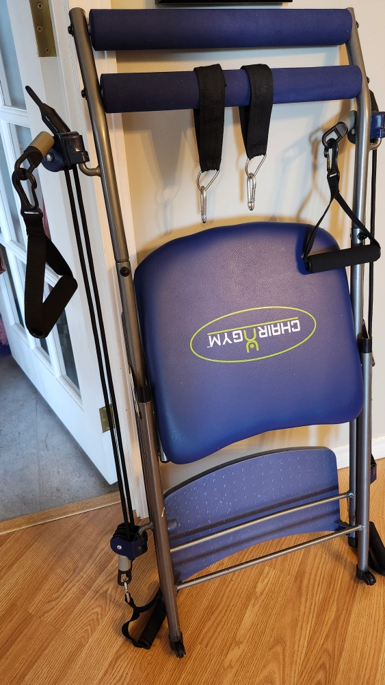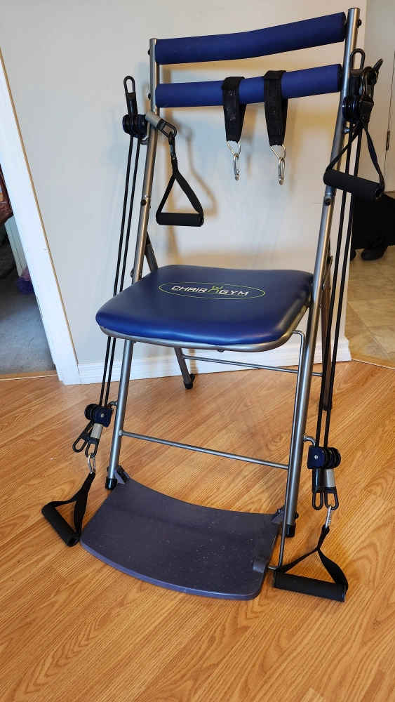 Get a full body workout from the comfort of a chair! This Chair Gym exercise system is a great way to stay active. It's in good condition and ready for a new home. I have no room for it anymore. There are instructions videos online.
