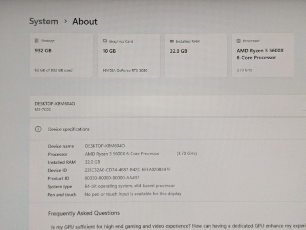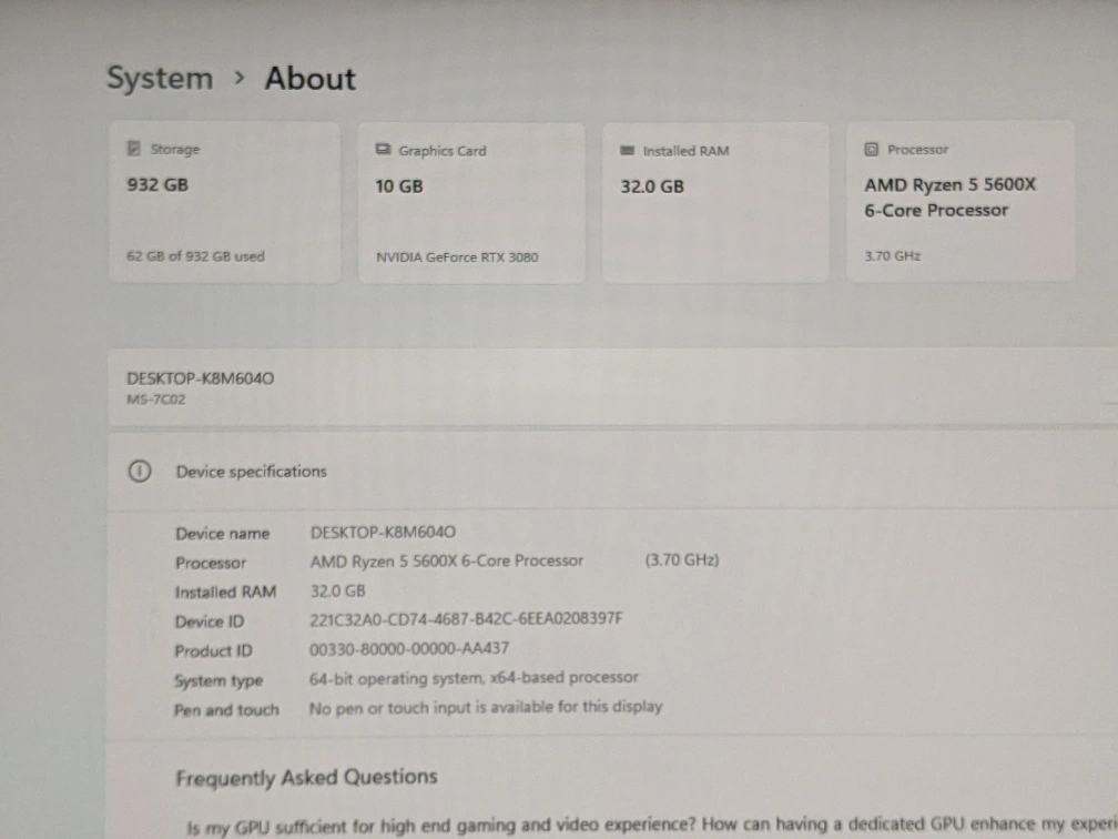 ๐ง CPU: Ryzen 5 5600X (6 cores, 12 threads) w/ AMD Wraith cooler