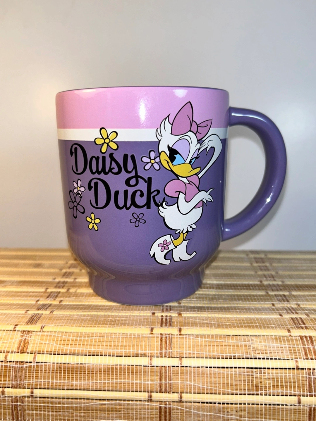 This is a cute Daisy Duck mug from Disney! It features Daisy Duck with flowers and the words "Well, I never!" on one side and "Daisy Duck" with flowers on the other. The mug is in great condition and ready for a new home