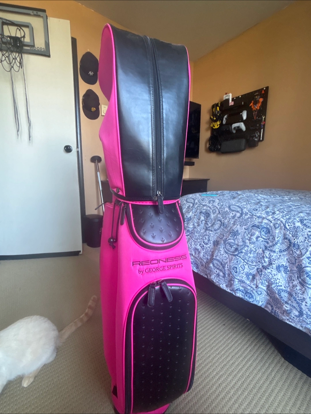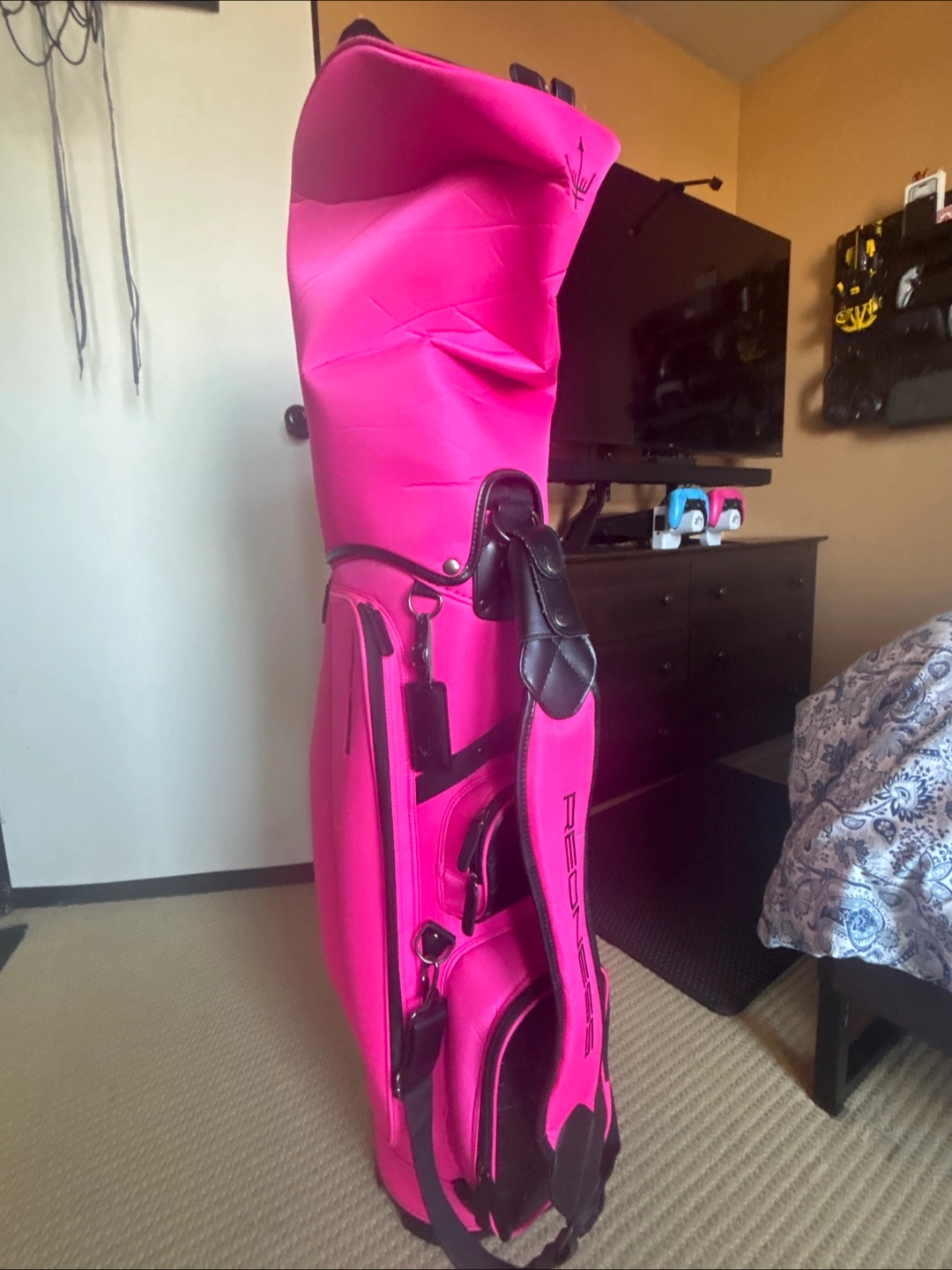92Selling a bright pink golf bag by Redness by George Spirits! It's in great shape and ready for the golf course