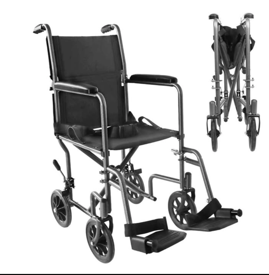 Selling a transport wheelchair that's easy to fold up and store. It's in great condition and perfect for getting around. It's lightweight and easy to maneuver, making it ideal for travel or everyday use.