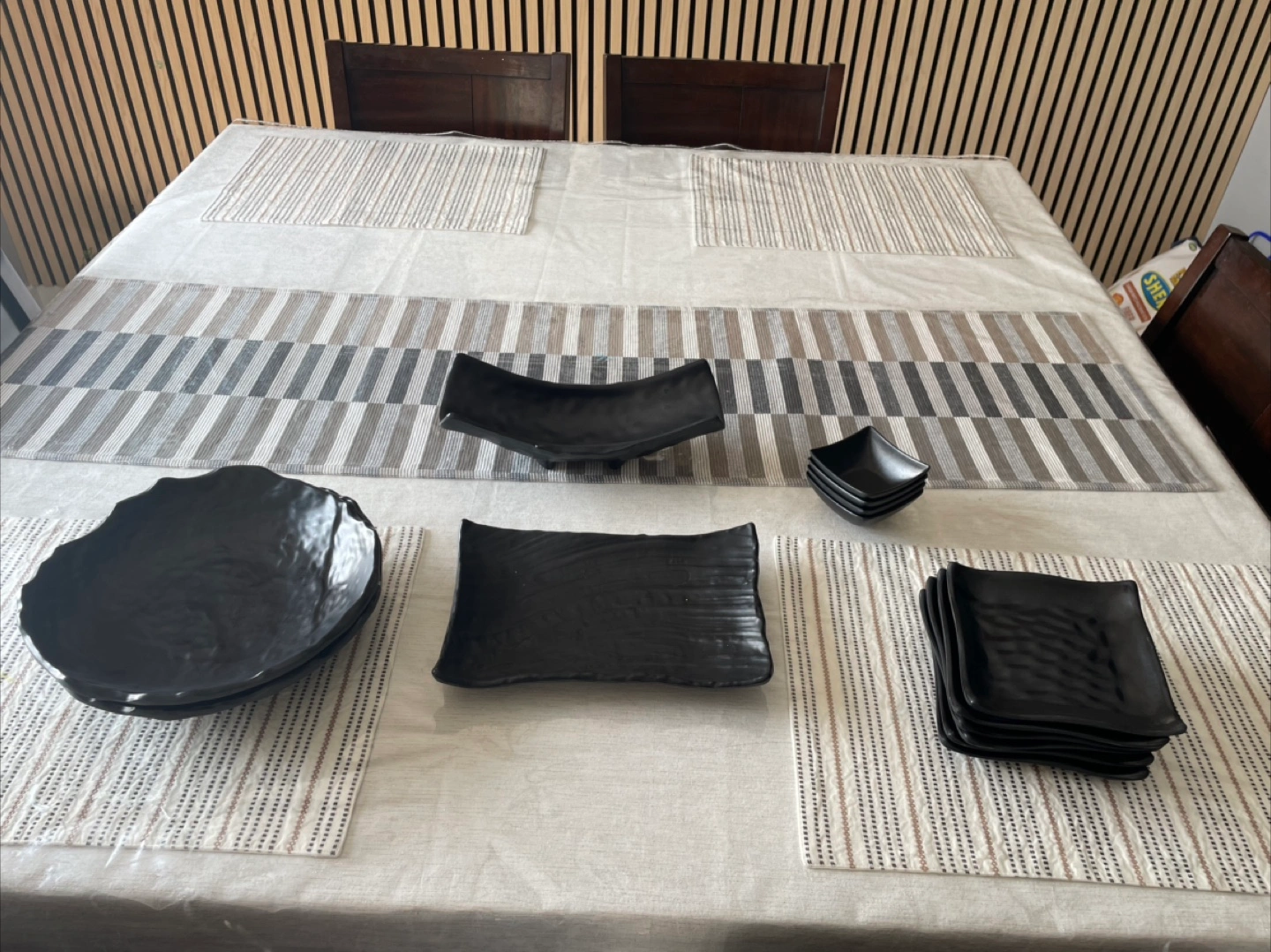 Selling a set of black serving dishes. They're in great shape and would be perfect for any occasion! Full set is $25, you can’t buy singular items.