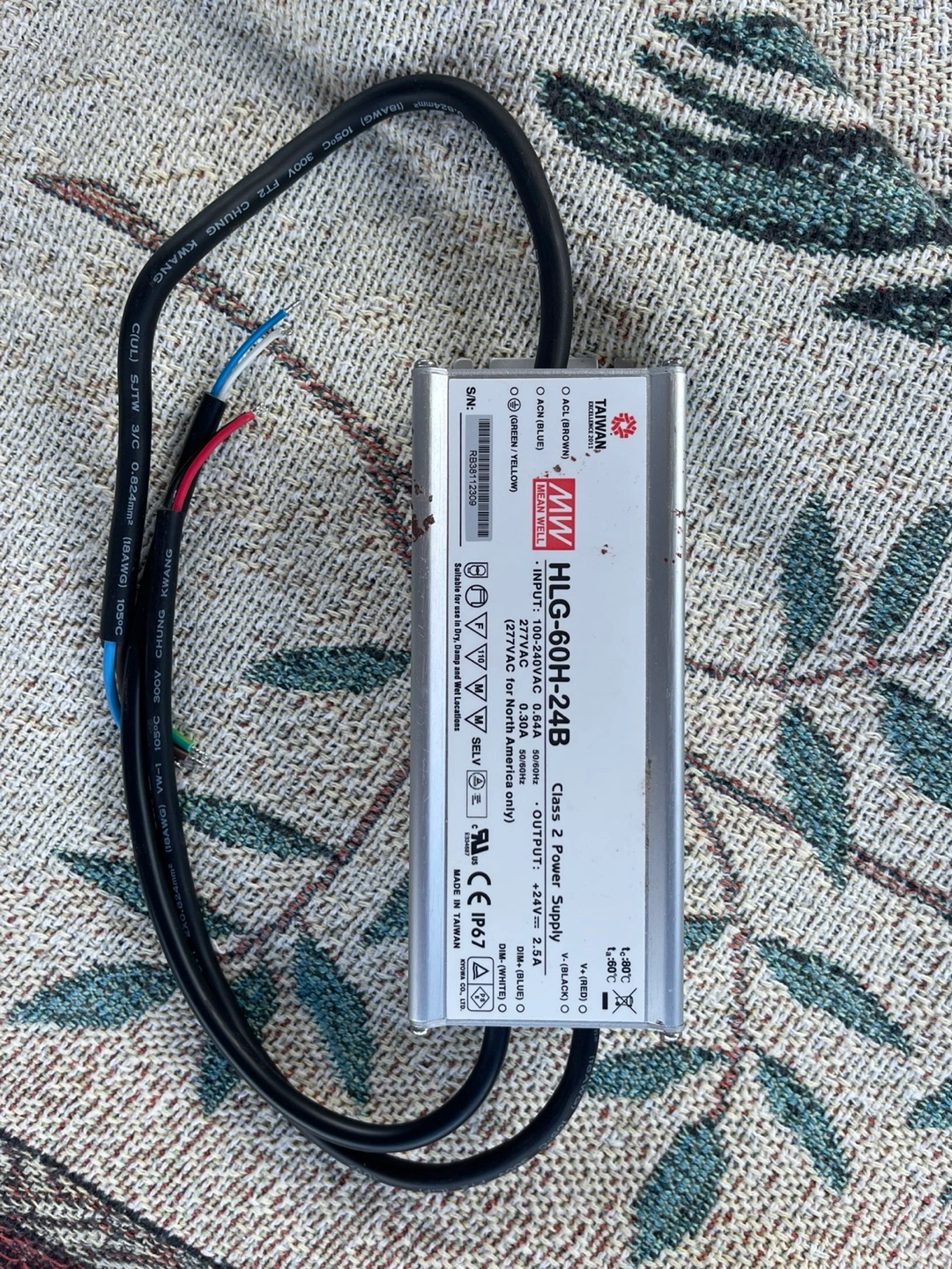 Selling a Mean Well HLG-60H-24B Class 2 Power Supply. It's suitable for use in dry, damp, and wet locations.