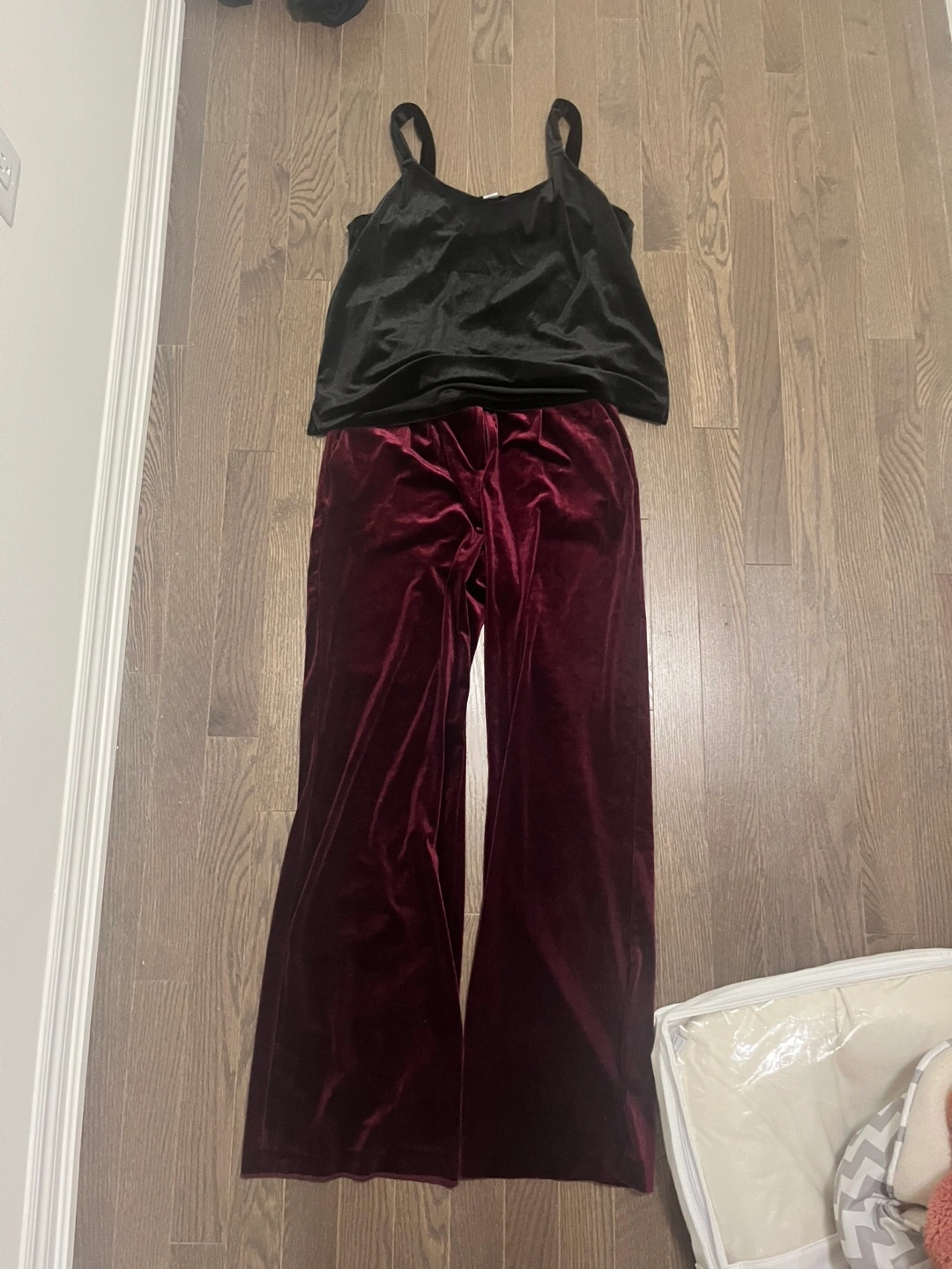 26Selling a cute set including: - Old Navy black velvet tank top, size S - Vero Moda velvet pants, size M Both items are in great condition and perfect for a night out or a cozy day in!