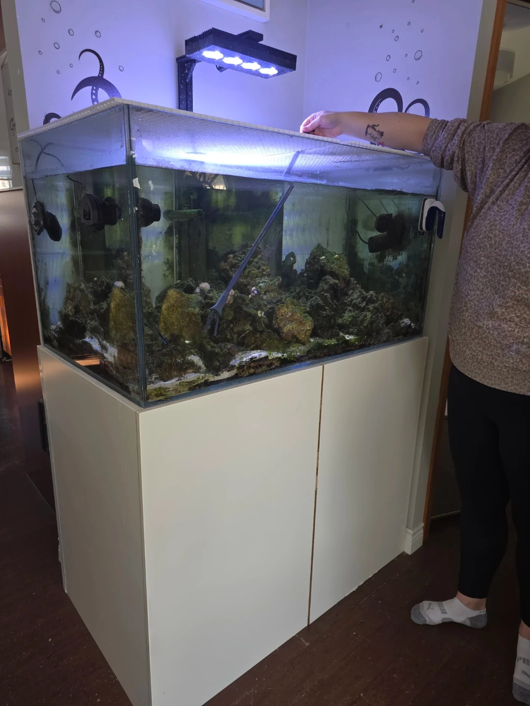This is a saltwater aquarium tank, complete with a stand. It's set up with live rock and sand for a reef environment. Includes multiple pumps and lighting. All bells whistles and livestock. Ato,skimmer uv scrubbers,RO system, sea salt, and testers