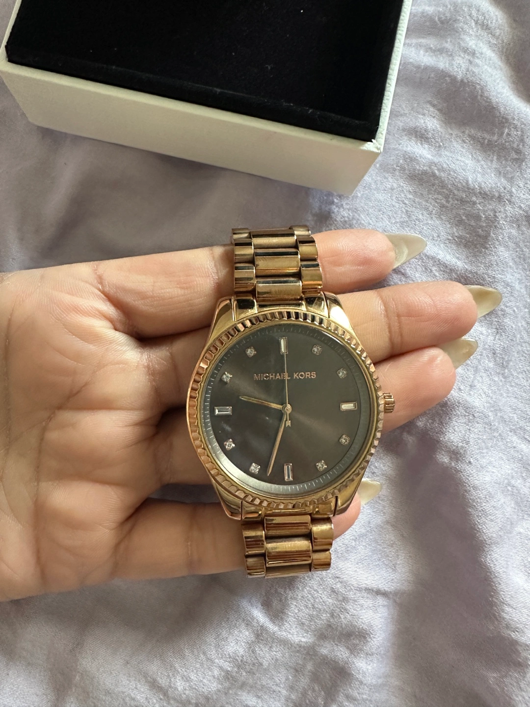 Selling a beautiful rose gold Michael Kors watch! It's in great condition and comes with the box. A stylish accessory to add to your collection! It’s like New!