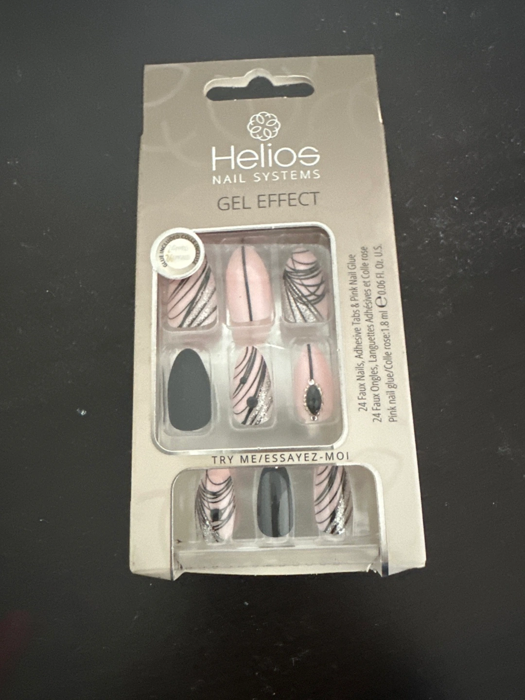 75Selling a set of Helios Gel Effect nail system with 24 faux nails, adhesive tabs, and pink nail glue! Includes glue