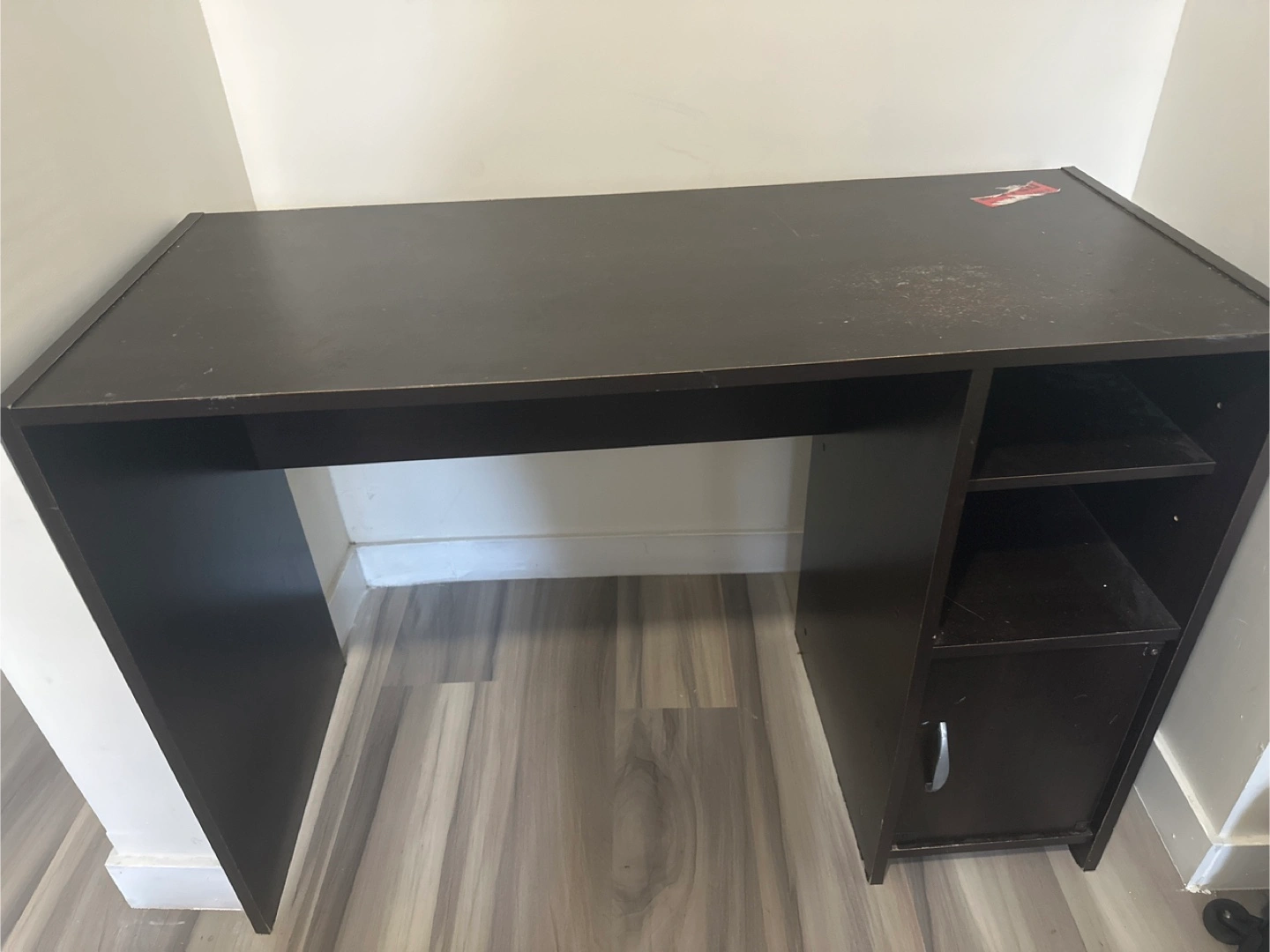 Selling a dark brown desk that's perfect for a home office or study space.still sturdy and functional. The desk includes built-in shelves and a cabinet for extra storage, helping you keep your workspace organizedππππππππππποΈ