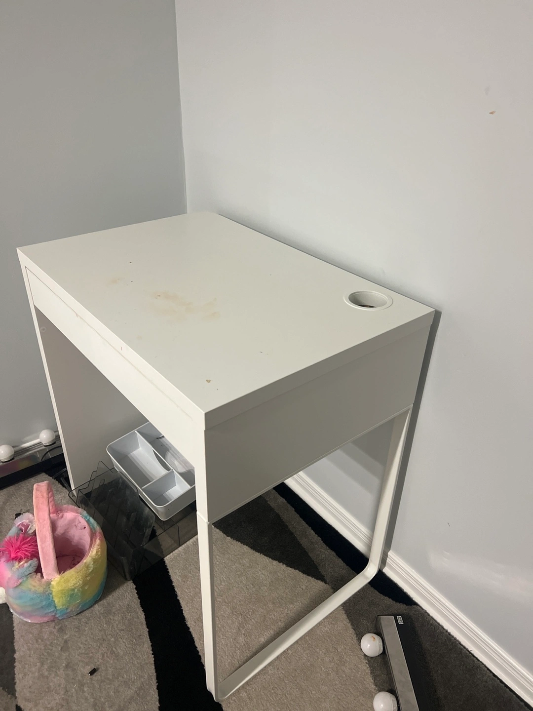 Selling a cute white vanity table with a mirror! It's in great shape and would be perfect for a bedroom or dressing area. Includes some handy organizers for your makeup and accessories. A stylish and functional piece for any space!