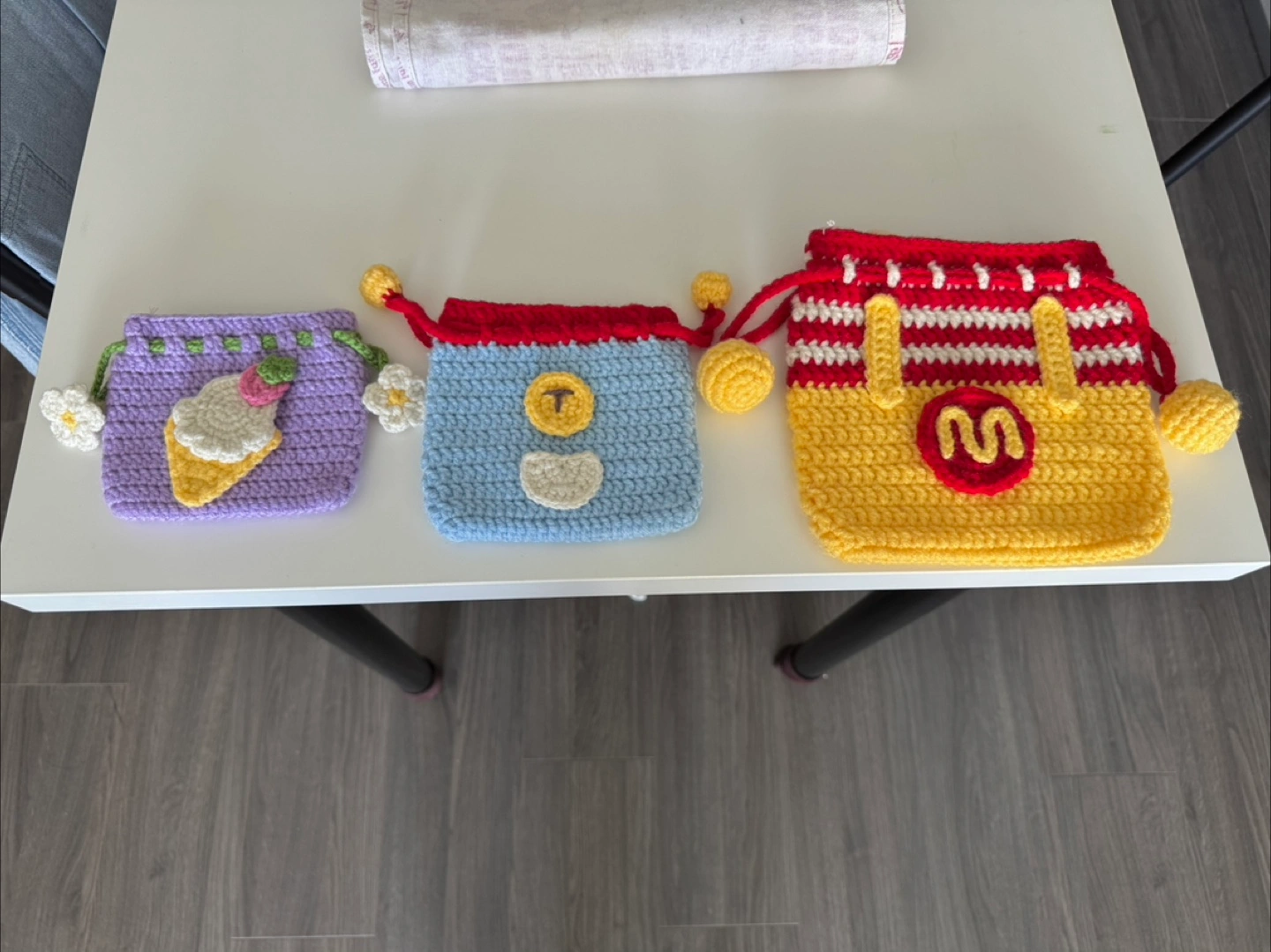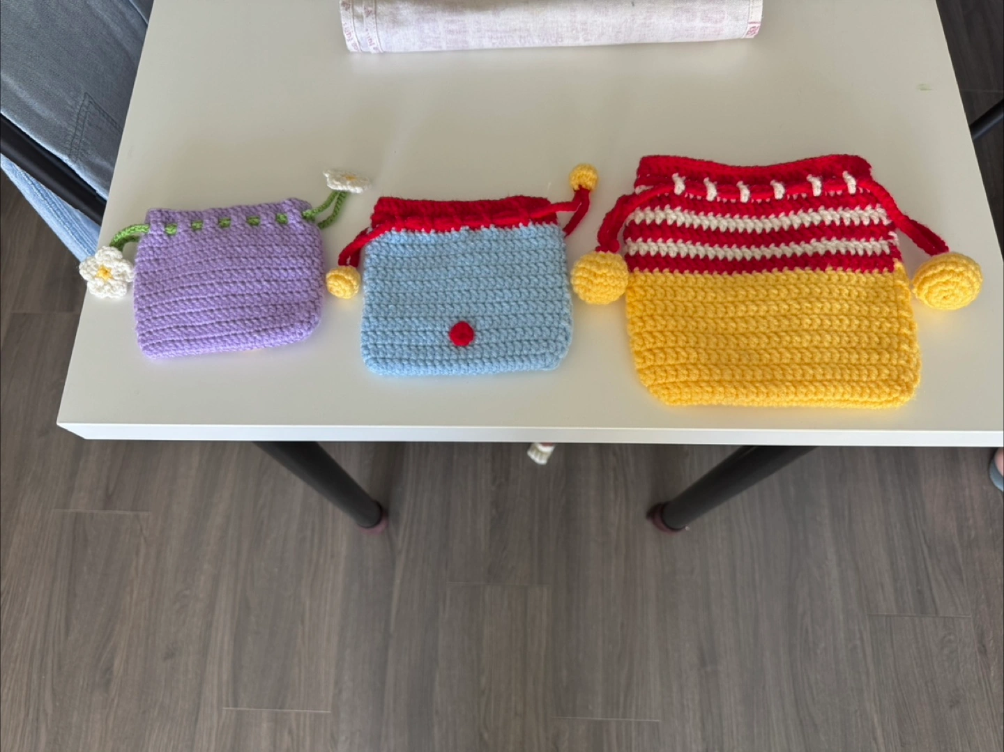 Brand new Handmade crochet pouch Very good quality Small size (purple) is $5 - sold Medium size (blue) is $10 Large size (yellow) is $15 They are ready to go:) Pickup only and cash only Pickup location is V5H0J8