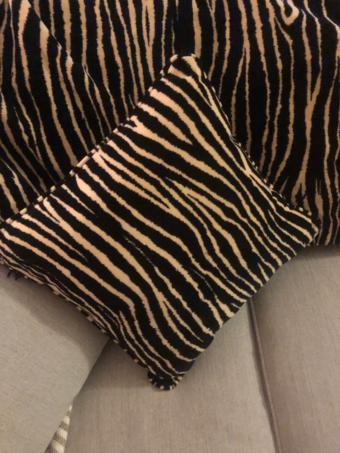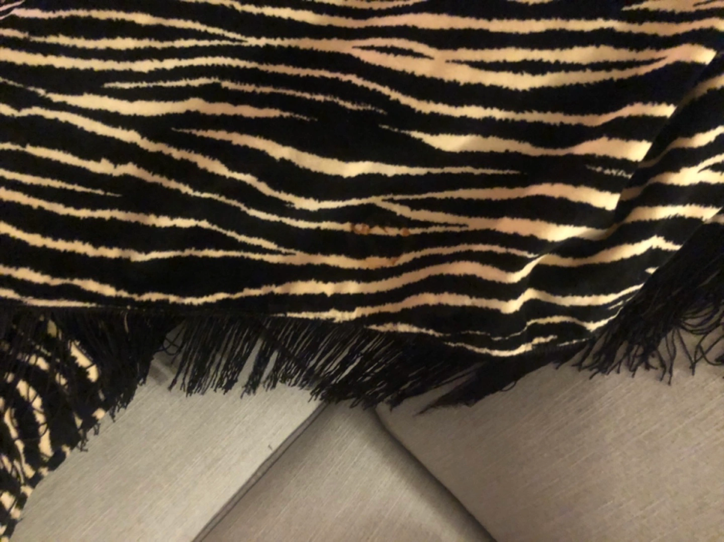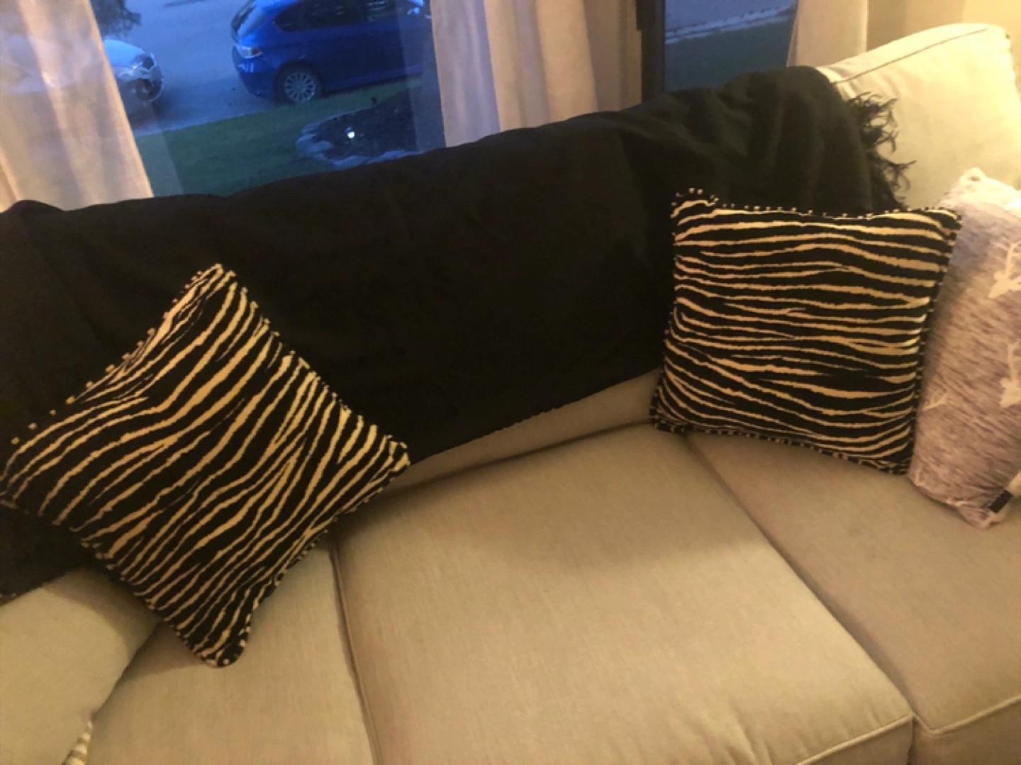 Selling a zebra print throw blanket and two matching pillows! They're in good condition and would add a fun touch to any living space. The blanket has some minor wear.