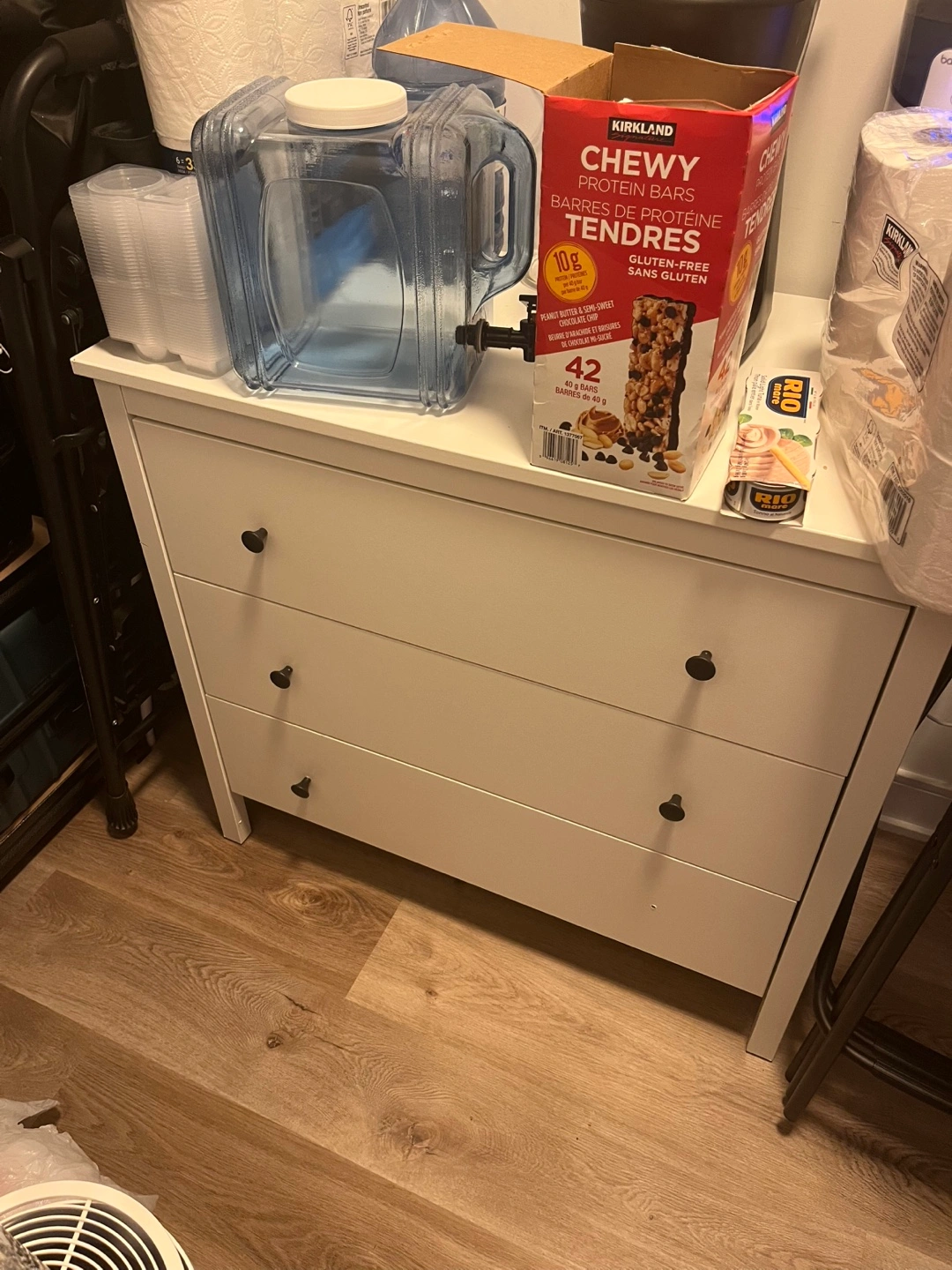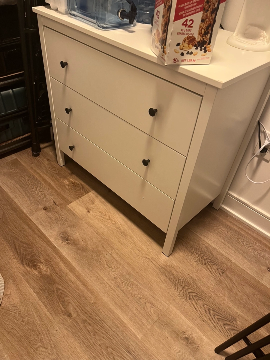 White IKEA dresser that features three spacious drawers (and as you can see for yourself we’re using it as an everything shelf too). It’s quite sturdy, and it’s clean too, I’m selling it to make space for a smaller unit to better utilize my den! Pick up only!