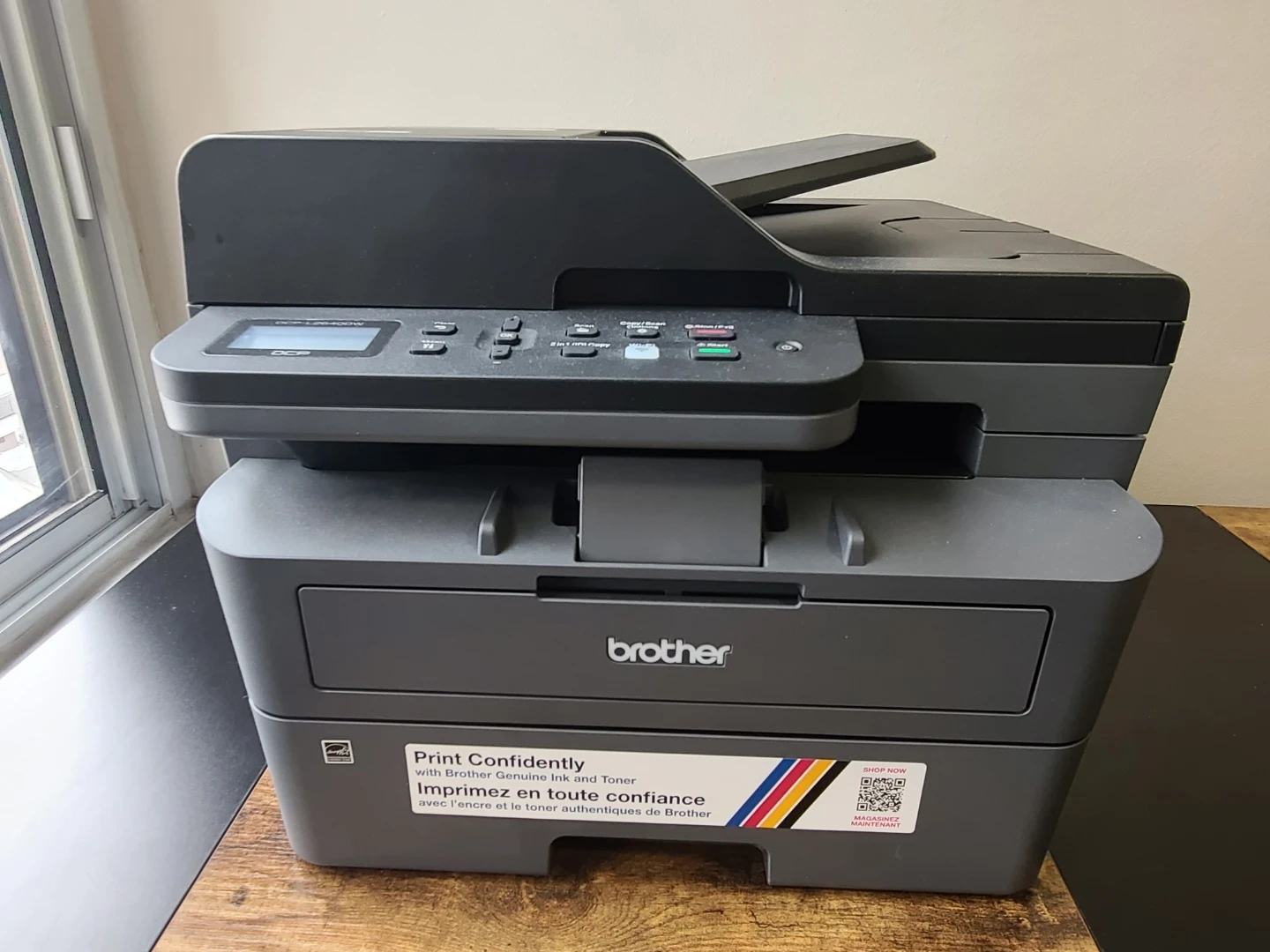 Brother DCP-L2640DW monochrome laser printer. This all-in-one unit prints, copies, and scans. It's a reliable workhorse for your home office needs. Wireless connectivity included!