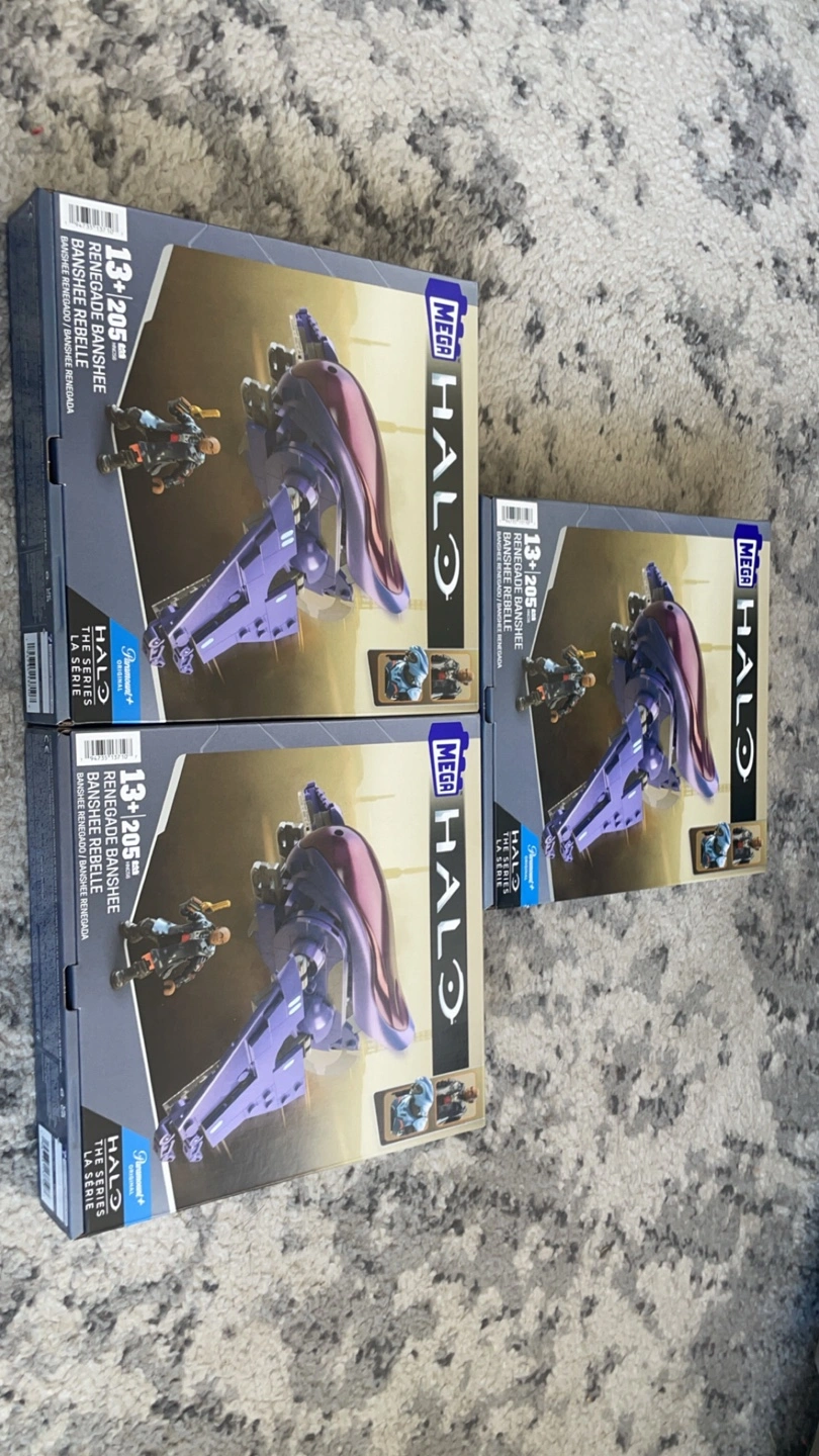 Selling three Mega Halo sets, each containing the Renegade Banshee Rebelde with 13+ and 205 pieces. These sets are perfect for Halo fans and collectors! Each box is included and in great condition.