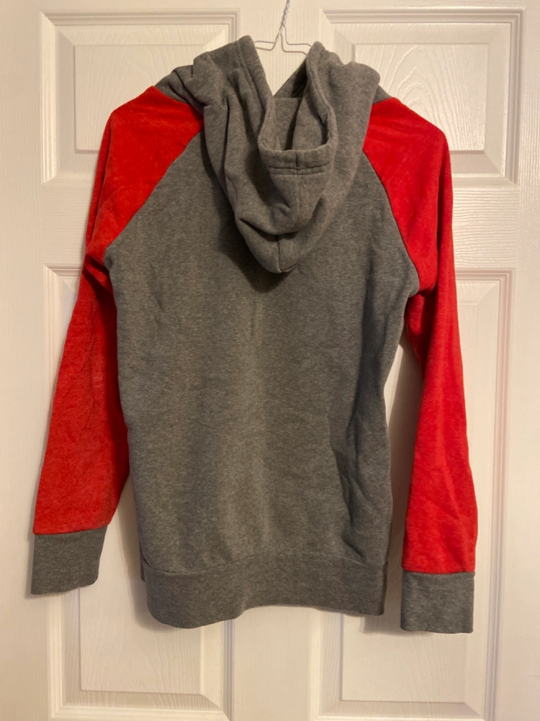 Selling a size S, women’s Toronto Raptors hoodie in red and grey! It's in great condition and features the Raptors logo on the front. Perfect for showing your team spirit!