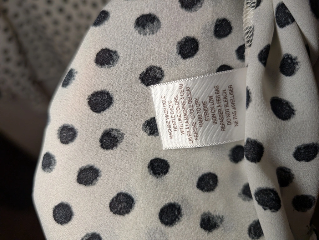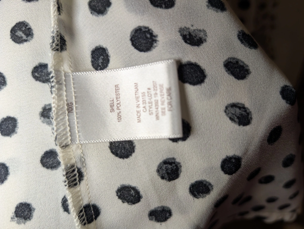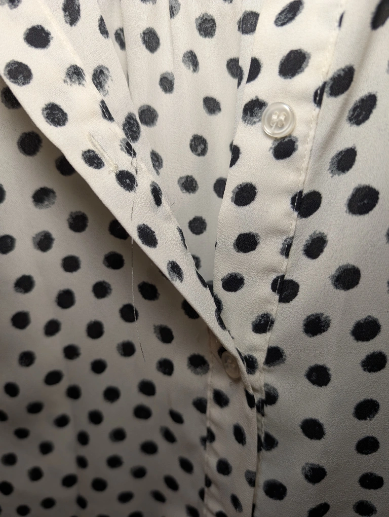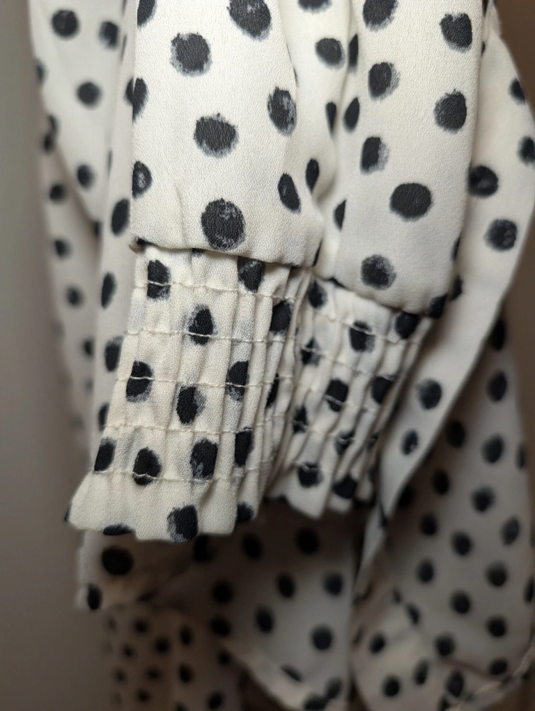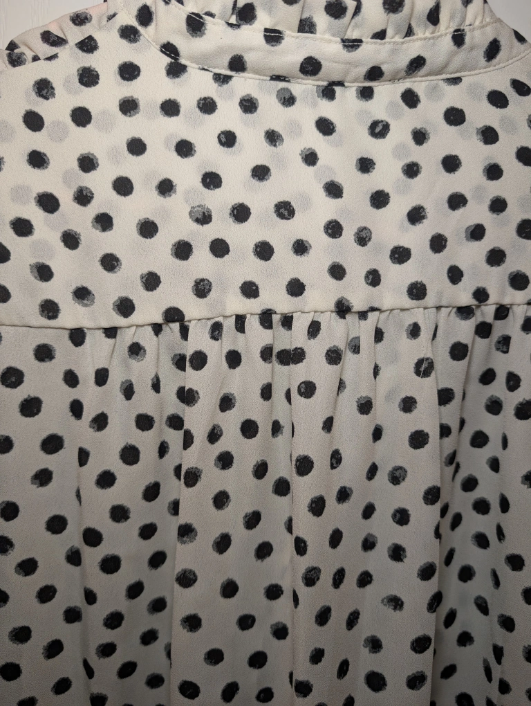 62Selling a Tamara H. blouse with a cute polka dot pattern! It's a size large. The material is lightweight and comfortable, perfect for spring or summer. It's in great condition and comes from a smoke-free home