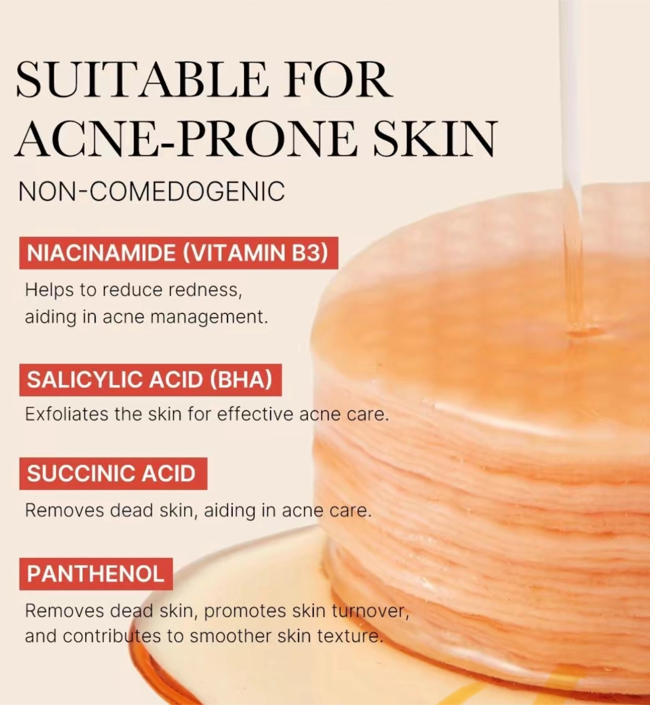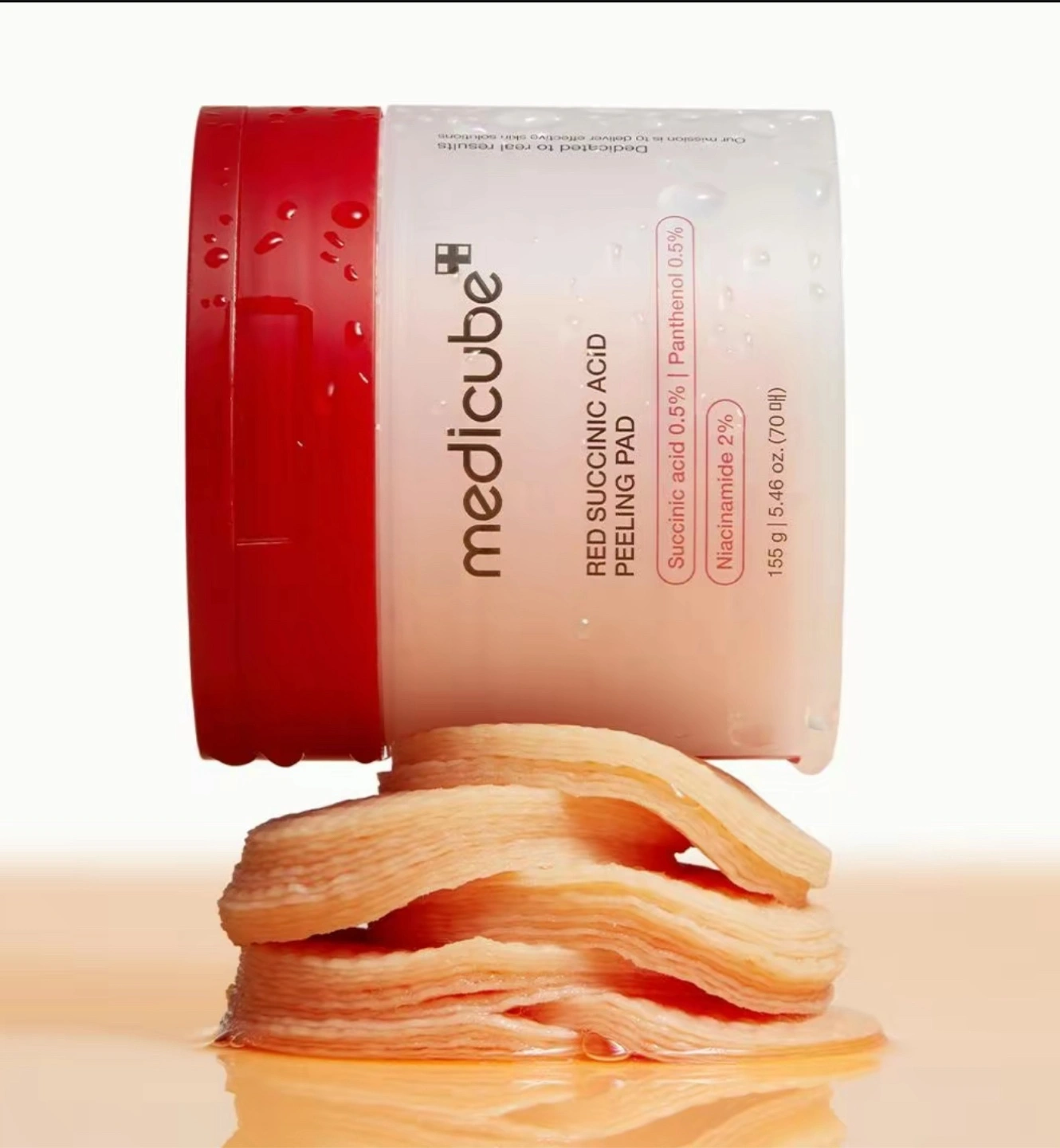 I'm selling Medicube Red Succinic Acid Peeling Pads! These pads are suitable for acne-prone skin and are non-comedogenic. They contain Niacinamide (Vitamin B3) to reduce redness, Salicylic Acid (BHA) to exfoliate, Succinic Acid to remove dead skin, and Panthenol to promote skin turnover. Each jar contains 155 g / 5.46 oz (70 pads).