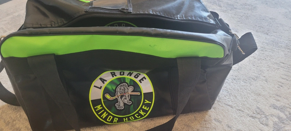 Selling a G-SW hockey bag with the La Ronge Minor Hockey logo! It's black and neon green. Perfect for carrying your gear to the rink