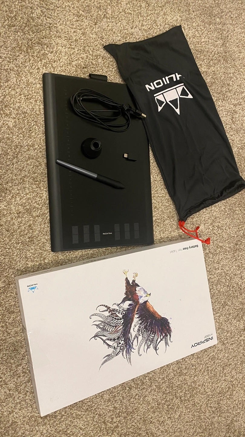 Selling a Huion Inspiroy H1060P graphics tablet in excellent condition! It comes with all the original components, including the pen, cable, and accessories shown in the photos. The box is also included for easy storage and transport.