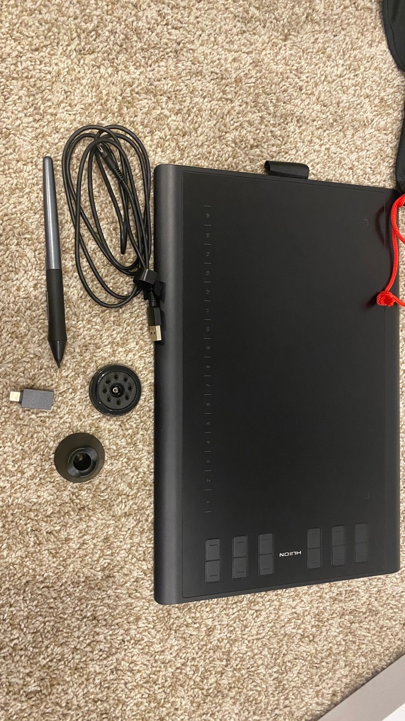 Selling a Huion Inspiroy H1060P graphics tablet in excellent condition! It comes with all the original components, including the pen, cable, and accessories shown in the photos. The box is also included for easy storage and transport.