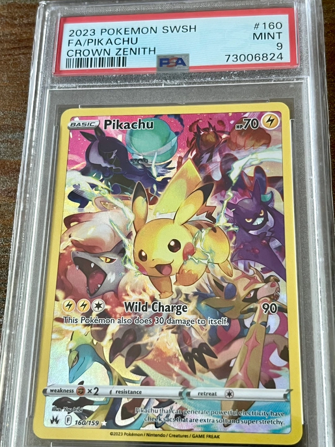 Buy & SellPSA 9 Pikachu 160/159PSA 9 Pikachu 160/159$60Selling a 2023 Pokemon SWSH FA/Pikachu Crown Zenith set Full Art RareWHERE TO MEETBrucedale and East 44th stView MapSELLERJenSunninghill292 reviews0 chats·0 favorites·10 views