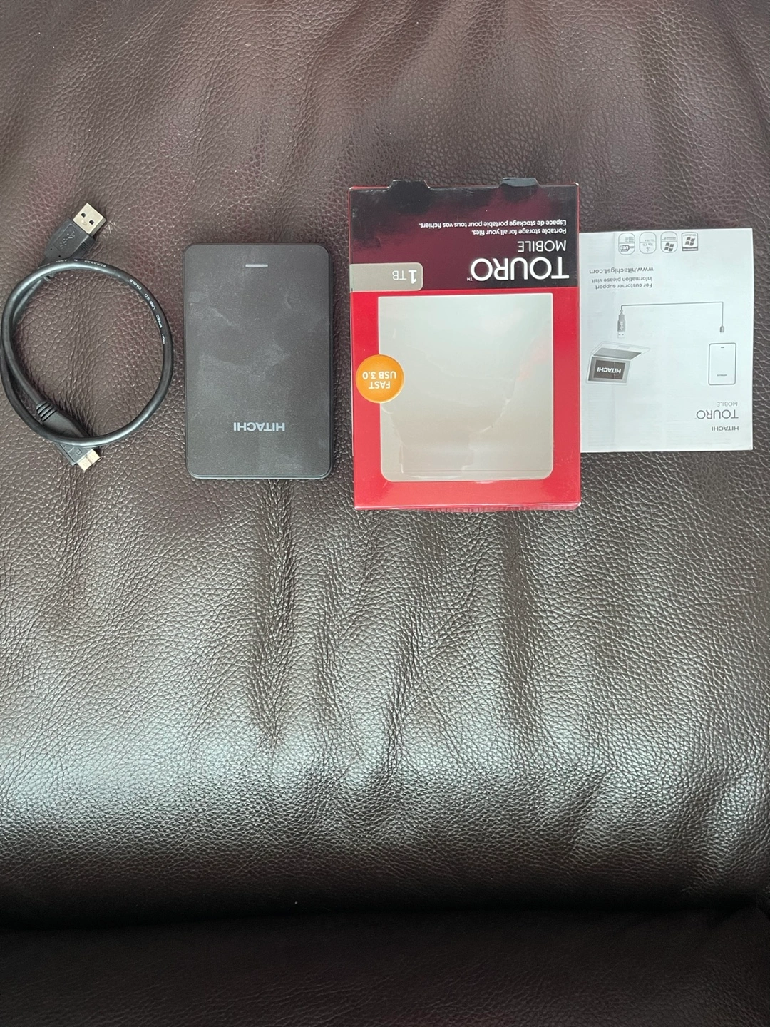 Selling a Hitachi Touro Mobile 1TB external hard drive! It's in great condition and comes with the original box and USB 3.0 cable