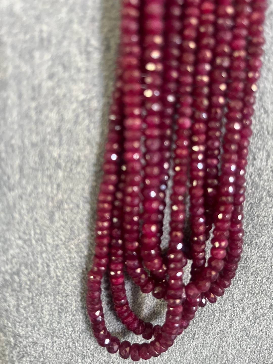 Beautiful fauceted beads of Vintage Red Ruby necklace, from Pakistan purchased in around the 1960’.s …perfect for adding a touch of colour to any outfit! The beads are a rich, deep red and catch the light nicely. It's in great condition and ready for a new home. Will provide letter of Authenticity directly from a reputable Jeweller in Vancouver at time of purchase