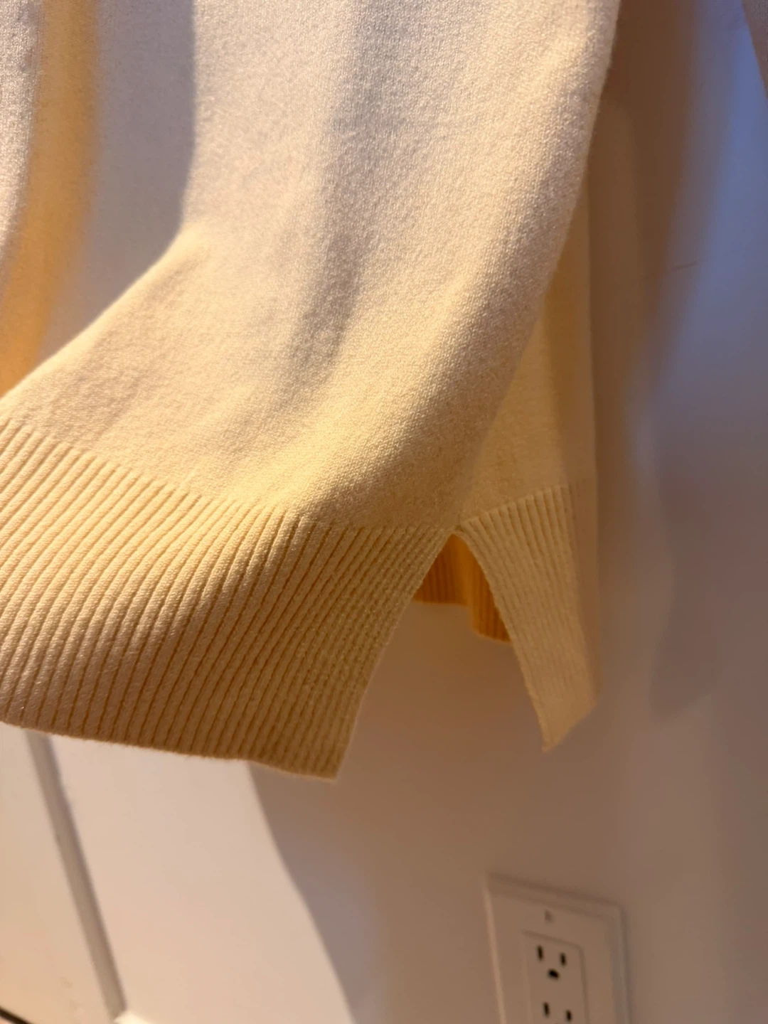 A cozy cream-coloured turtleneck sweater, perfect for layering or wearing on its own! It's in great condition and ready for a new home. The material is soft and comfortable, making it ideal for those chilly days.