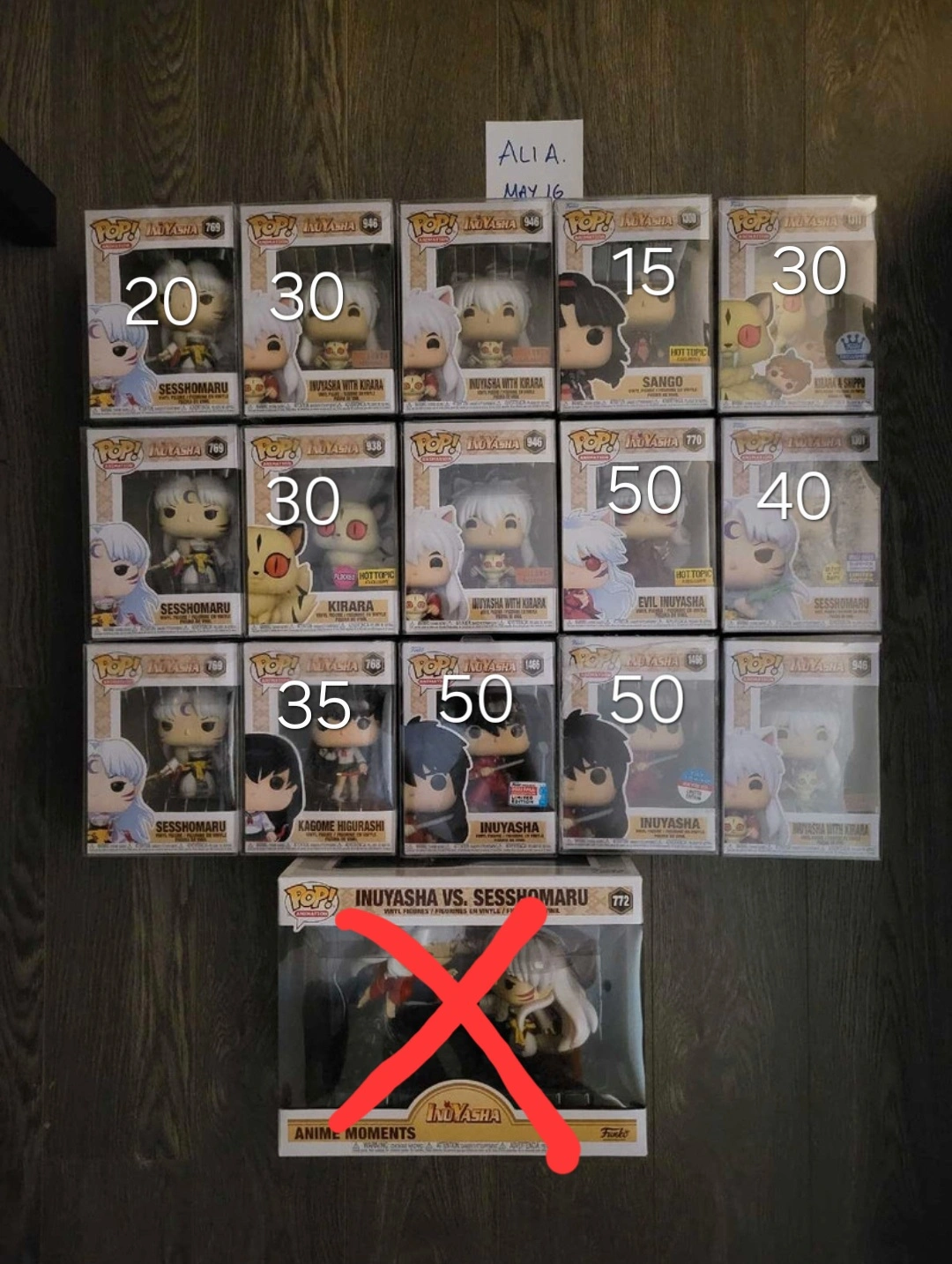 Selling various Funko POP! figures from the Inuyasha series. All figures are in their original boxes. See prices below: