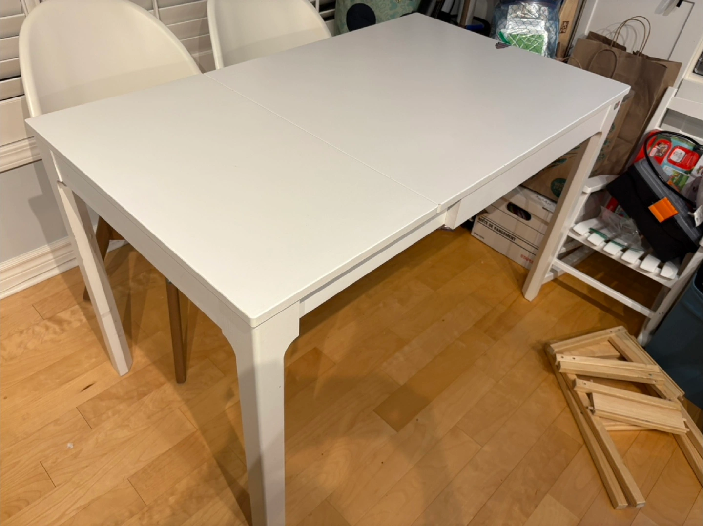 Selling a lovely extendable dining table! It's in good shape and ready to find a new home. Perfect for hosting extra guests or enjoying family meals
