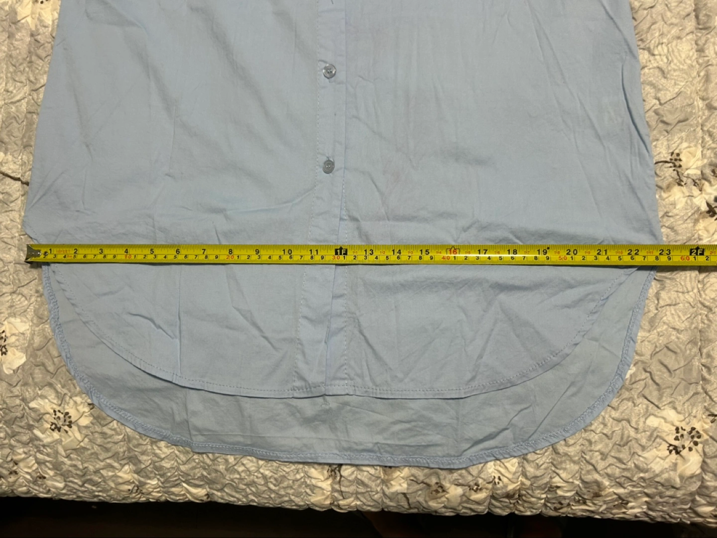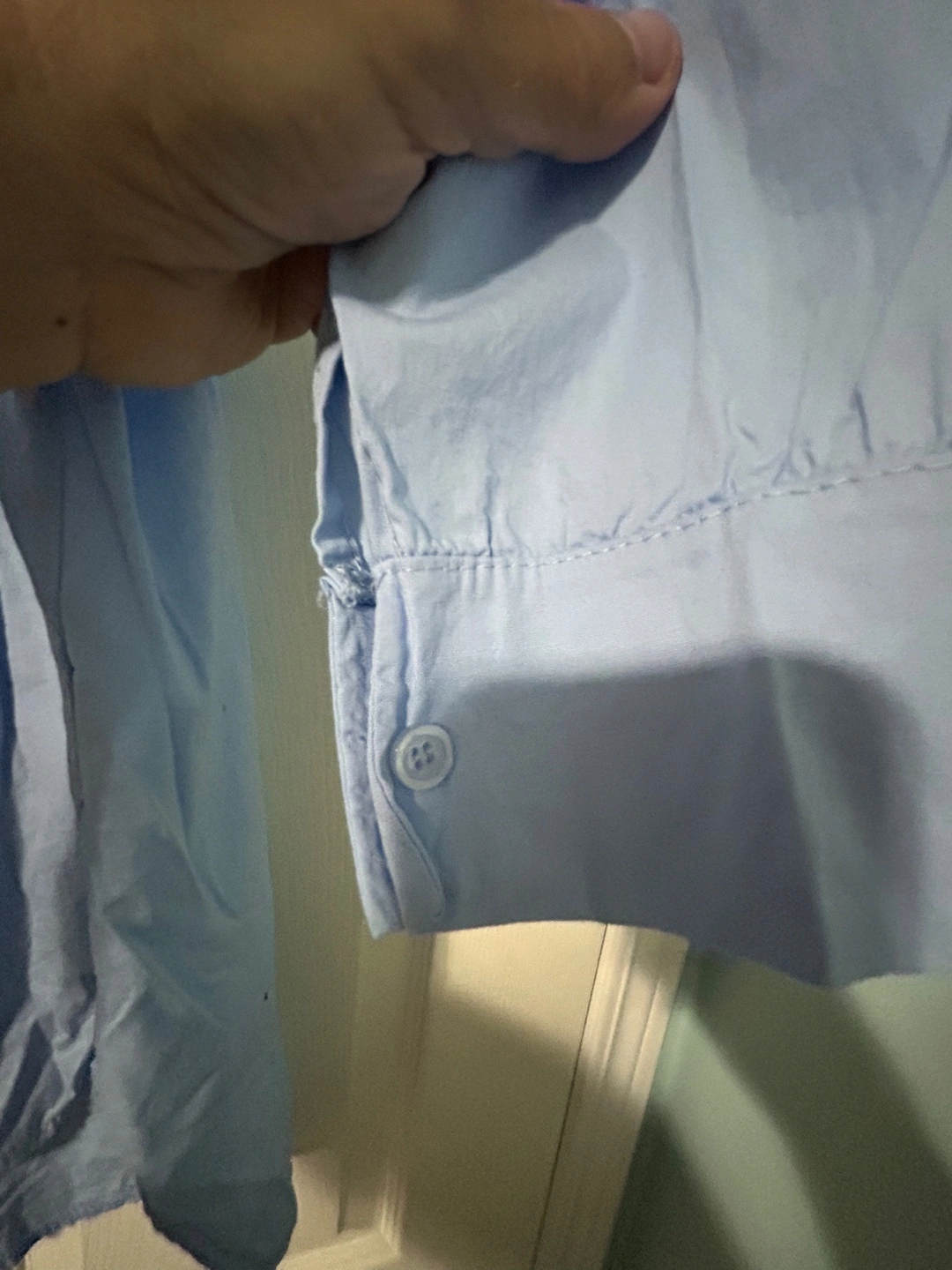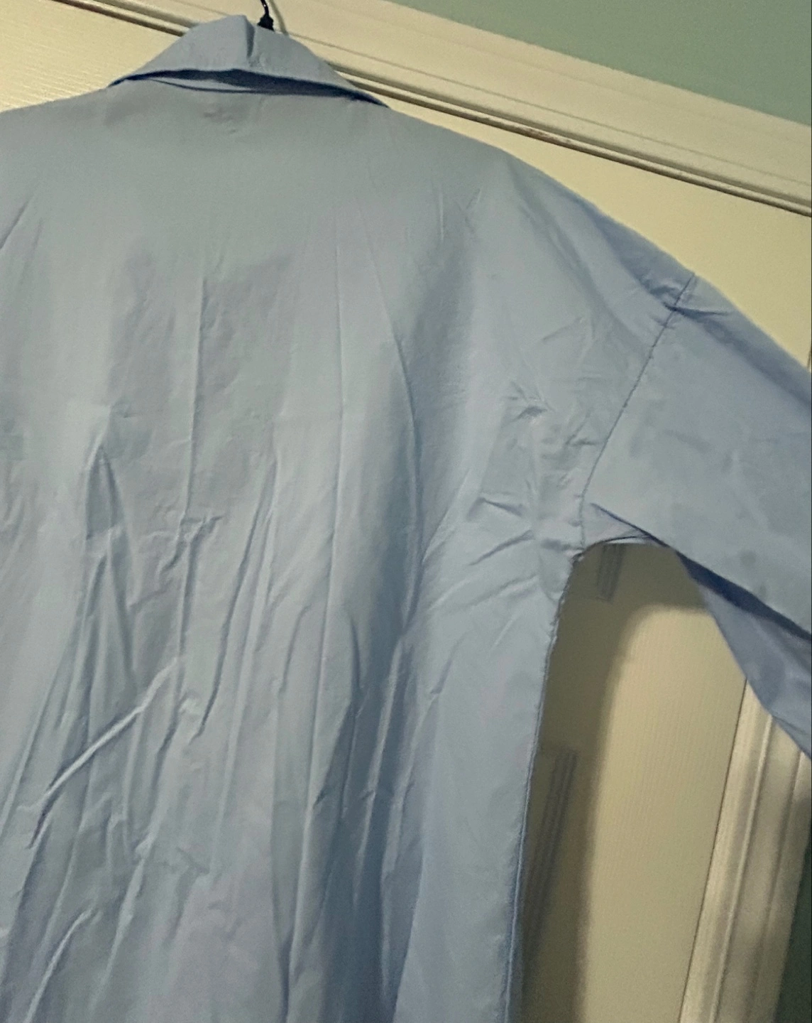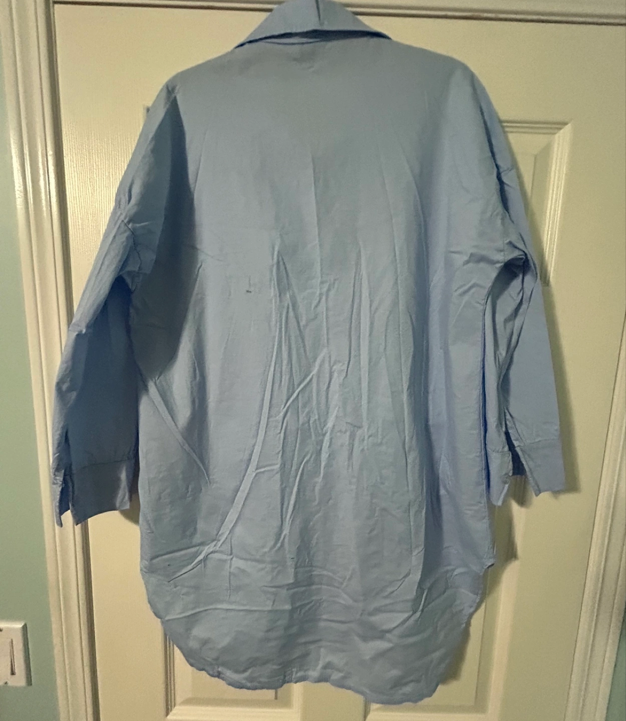 New, From Europe, a ladies light blue button-up shirt made of cotton with spandex. Soft and has stretch