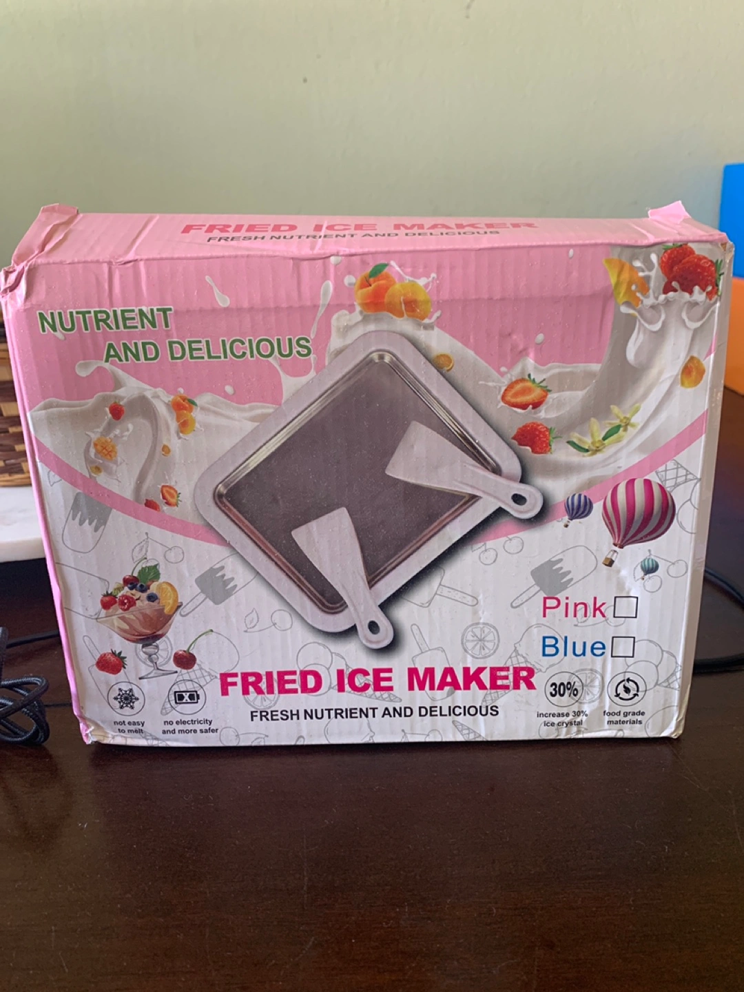 Selling a Fried Ice Maker that promises fresh, nutrient-rich, and delicious results! The box highlights that it operates without electricity, making it safer to use. It also boasts a 30% increase in ice crystal formation and uses food-grade materials. Perfect for making fun and healthy frozen treats at home!