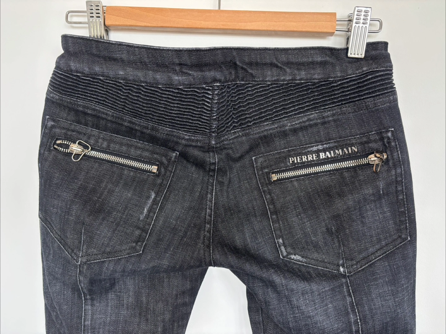 Pierre Balmain jeans purchased in Paris. They are low rise and have zips on the bottom of each leg.