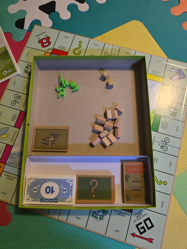 176Pick up in North York Keele St and Wilson Ave area Retails $40 Played with once; they prefer original version ▶️ Multi Family Account / Cash only AI: Selling a Monopoly Go Green board game! It's a fun twist on the classic game with an eco-friendly theme. The game is complete with all its pieces, including the board, cards, wooden houses, and tokens made with plant-based plastics. The box is included as well!