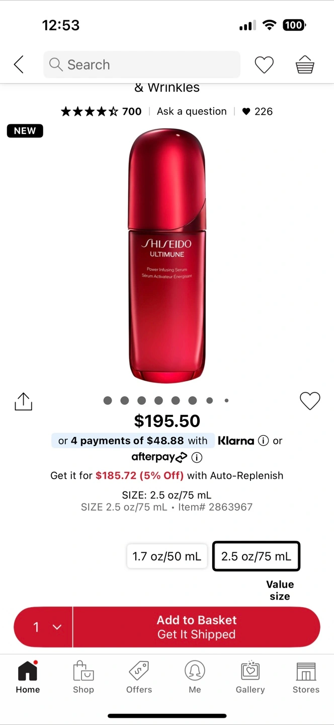 Selling a Shiseido Ultimune Power Infusing Concentrate III. It comes in a 75ml/2.5 oz size.
