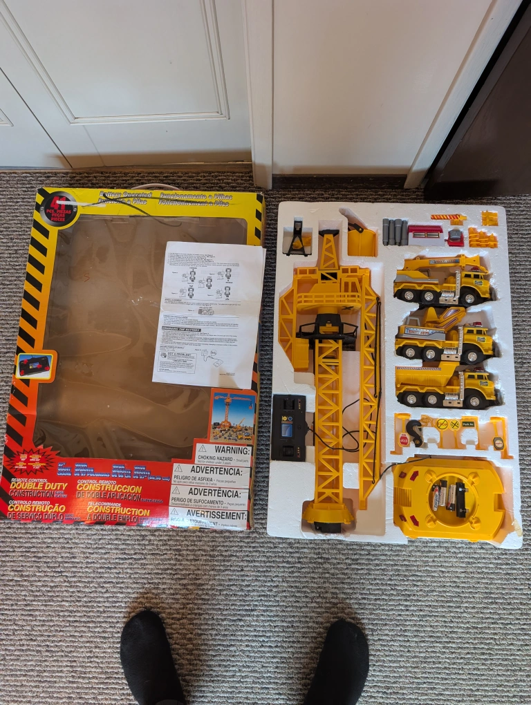 This is a remote control double duty construction crane set. It comes with all the pieces and the original box and manual . It's a great toy for kids who love construction! or collecters 150$ or best offer