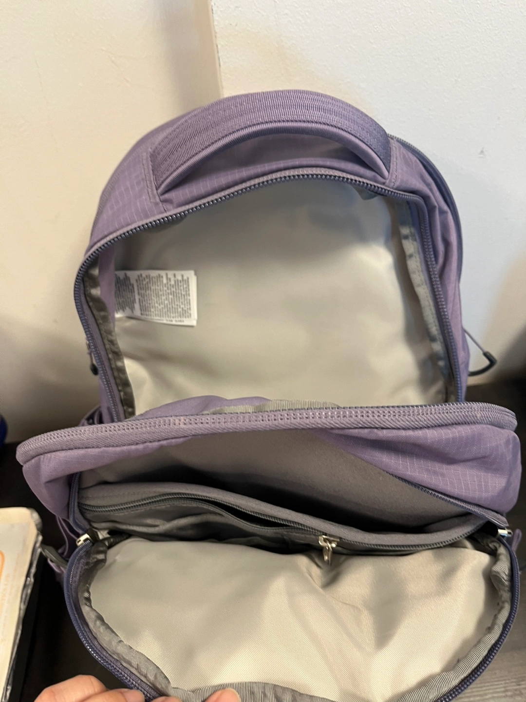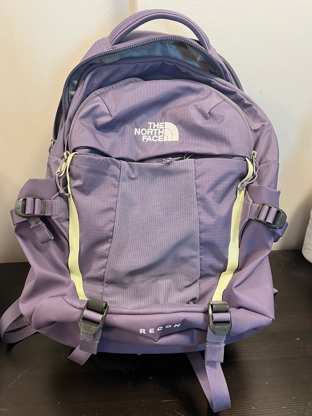 NWOT North Face Recon backpack in a lovely lavender colour! It's in great shape and ready for your next adventure, whether it's hitting the books or exploring the great outdoors. It's a women's Recon Daypack.