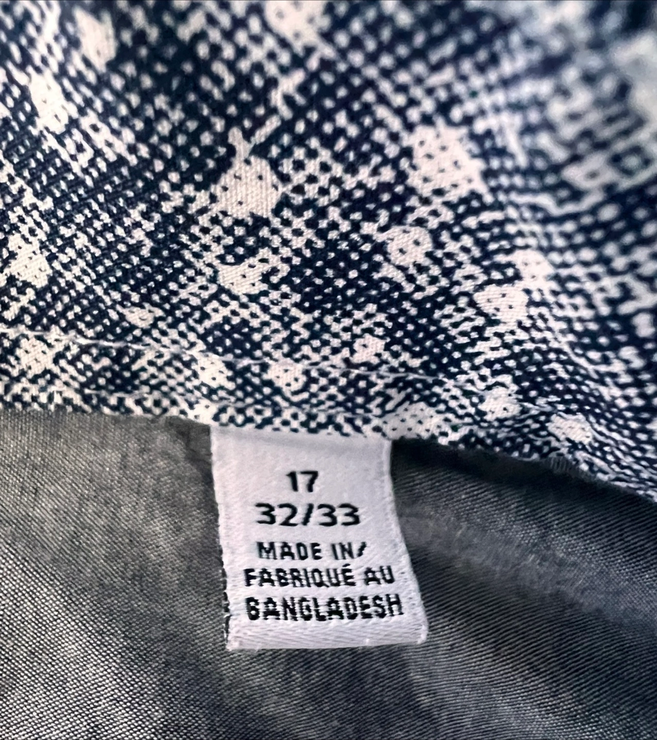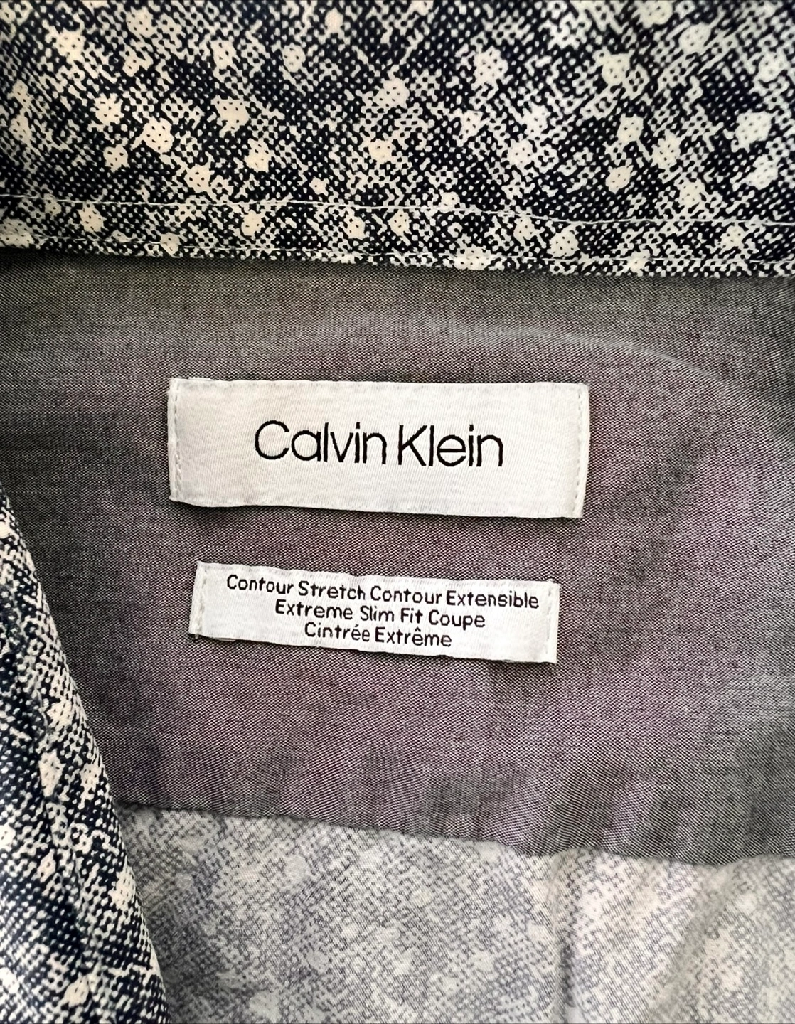 Selling a Calvin Klein Contour Stretch Extreme Slim Fit shirt in size 17 32/33. The shirt features a stylish pattern and is made with contour stretch material for a comfortable fit