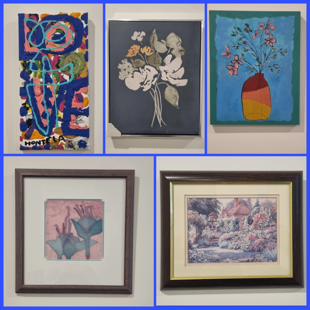 109Selling a collection of 5 assorted wall art. Includes a variety of paintings and prints in different styles and frames. Perfect for adding some character to your home decor or diy