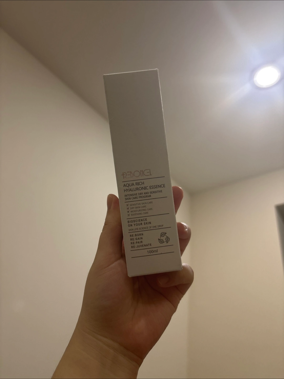 Selling a Reboncel Aqua Rich Hyaluronic Essence. It's designed for intensive dry and sensitive skin care. It provides moisturizing and soothing care, and it's a 100ml bottle