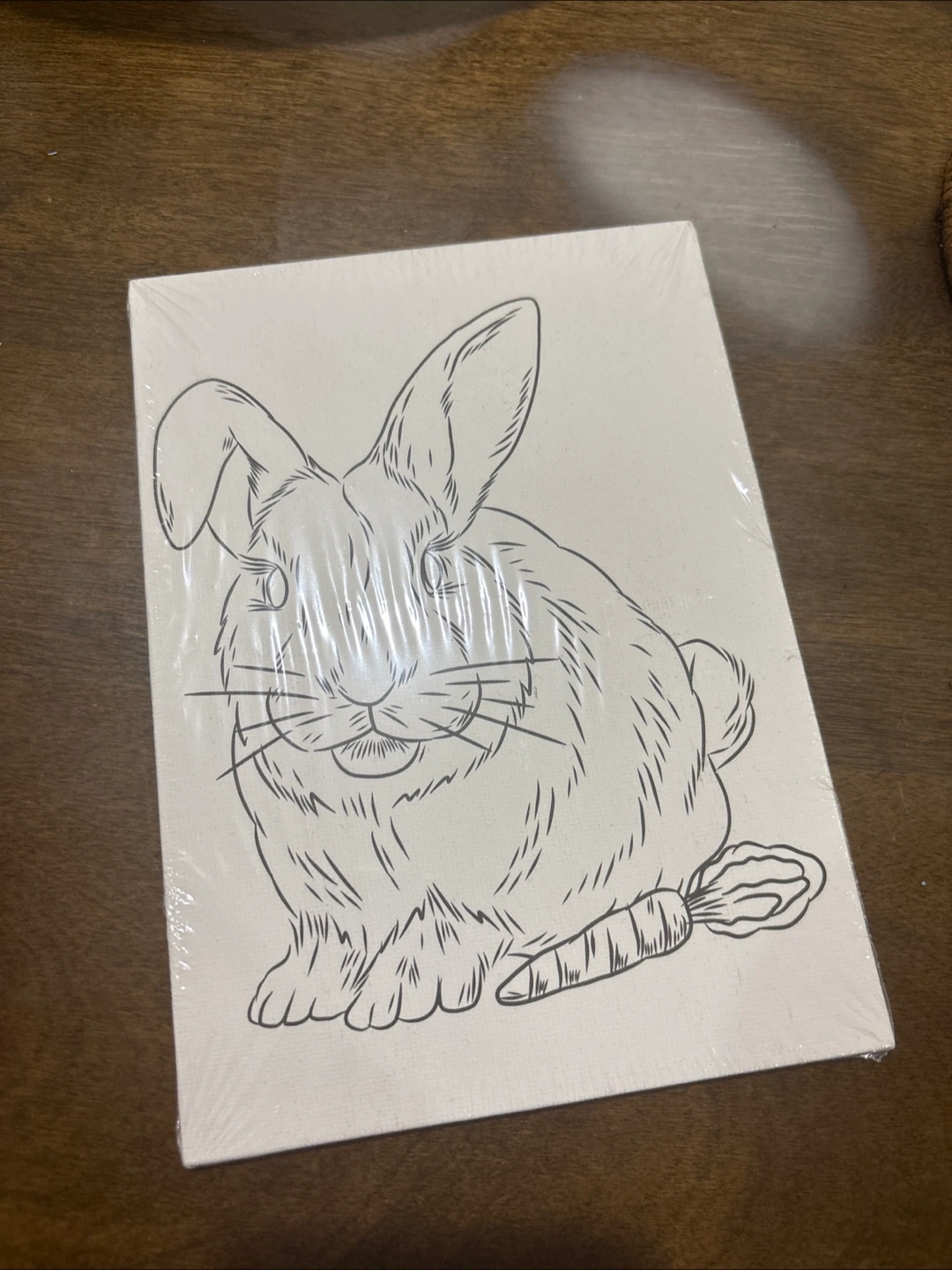 I'm giving a brand new DIY rabbit canvas art kit! It's still sealed in its original packaging, ready for you to create your own masterpiece. Perfect for a fun and relaxing activity!