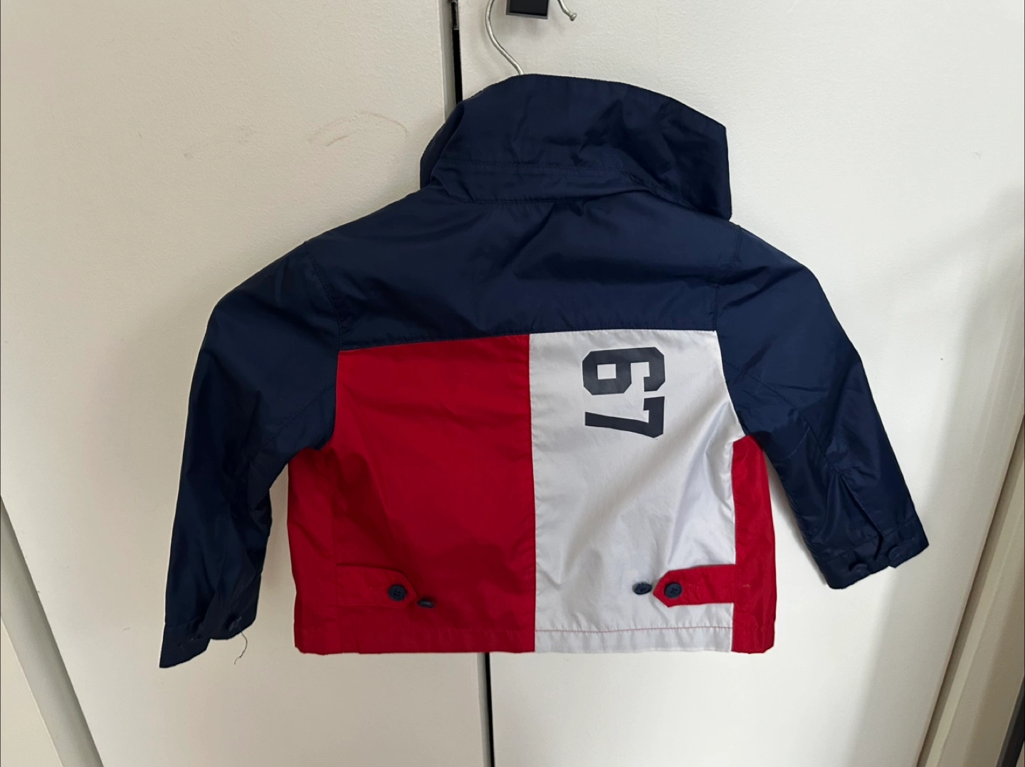 Selling a super cute Polo Ralph Lauren kids jacket! It's size 2T and features a classic colour block design in navy, white, and red. Perfect for keeping your little one stylish and warm.