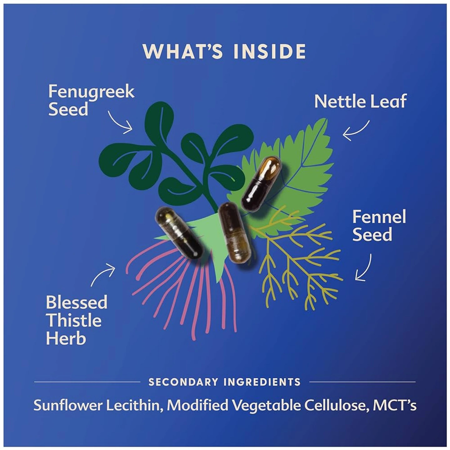 Selling a bottle of Motherlove More Milk Plus herbal supplement, formulated for breastfeeding moms who want to support their milk supply. Key ingredients include fenugreek seed, nettle leaf, and fennel seed. It also contains blessed thistle herb and secondary ingredients like sunflower lecithin. This supplement is designed to help optimize breast milk production