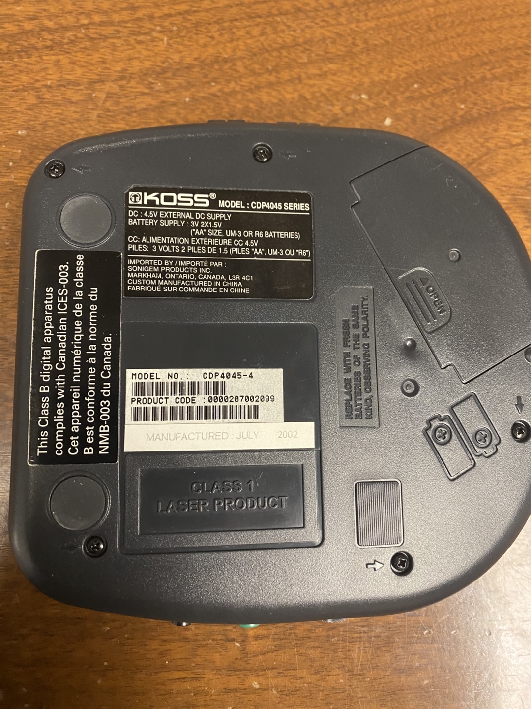 Selling a Koss CDP4045 Series CD player. It features dynamic bass boost sound and anti-skip functionality. Also included are Sony earbuds for your listening pleasure! Manufactured in July 2002.
